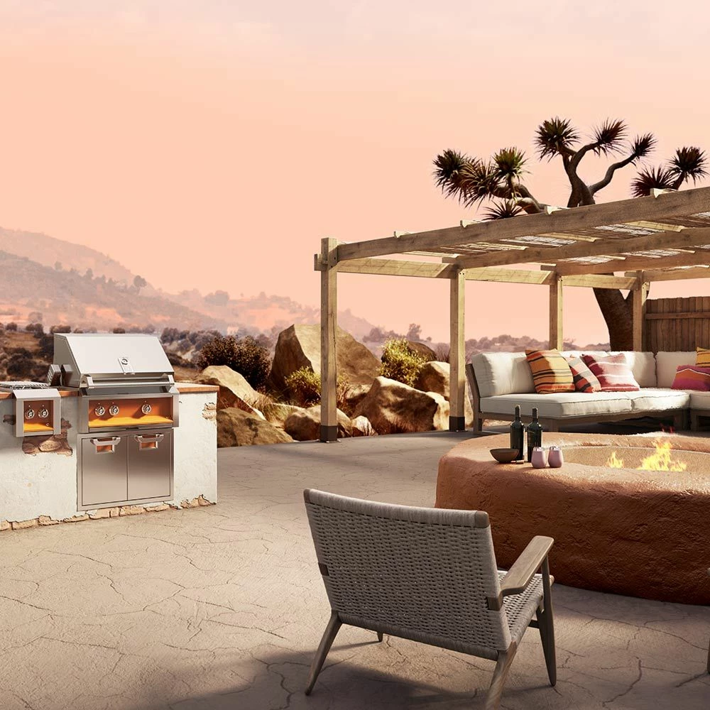Aspire by Hestan EBR30 Built-In Gas Grill, 30-Inch combines robust durability, premium performance and stunning craftsmanship to provide a more affordable alternative to Hestan’s flagship BBQ grill. The Aspire 30-Inch built-in grill is characterized by Dual-Halogen interior grill lighting, 304 Stainless Steel burner construction, flip-to-clean ceramic briquettes that create flavor-filled smoke, and a 23,000 BTU Infrared Sear Burner option (choose from drop-down) to offer an unmatched high heat alternative that’s perfect for those juicy steaks. The durable 1/4-inch diameter stainless steel rod cooking grates are easy to lift, and are upgradable to the thicker, heavy-duty DiamondCut grill grates (sold separately). An optional Rotisserie kit option will feature a ceramic infrared top burner to help complete your perfect cooking station. With the reliable Hot Surface Ignition System and 666 total square inches of cooking area, this built-in gas grill from Aspire by Hestan is sure to be a superb addition to your outdoor kitchen paradise.