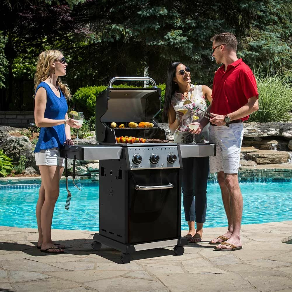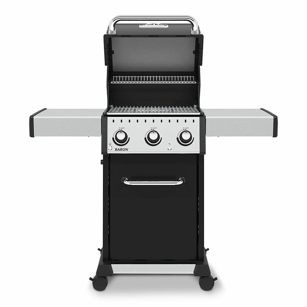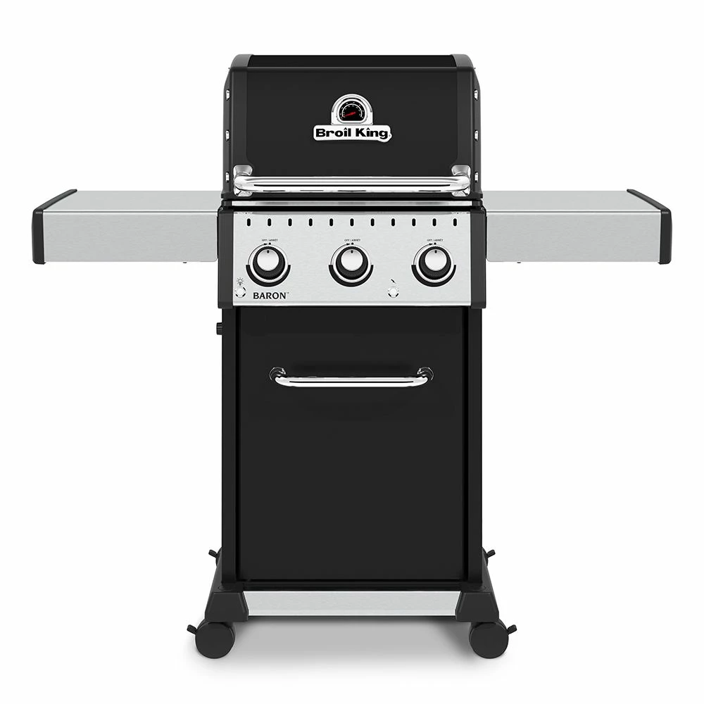 Broil King BR-320 Baron 320 Pro 3-Burner Gas Grill, 50-Inches offers a premium grilling experience for your outdoor kitchen. This grill features die-cast aluminum and high-grade stainless steel construction for proven durability and excellent heat retention. Heavy-duty stainless steel cooking grids offer an impressive grilling service for food, while their solid design ensures excellent heat retention and searing power. The stainless steel Flav-R-Wave cooking system offers impressive heat distribution across the entire surface of the grill, while drippings that fall onto the Flav-R-Wave system are instantly vaporized. Three Dual-Tube burners feature high quality, heavy-duty stainless steel construction with a tube-in-tube, side-ported design for even heating. Linear-Flow valves with 180-degree Sensi-Touch control knobs offer smooth and simple heat control to precisely control the temperature of your grill.