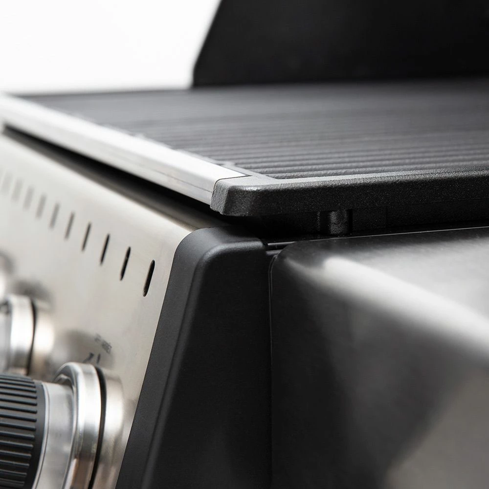 This freestanding grill features a rigid steel cabinet with steel doors for added storage space for your outdoor kitchen necessities, while the premium finish offers an attractive appearance. Propane models feature an integrated tank holder for added convenience to round out this impressive grill design, while all models feature folding side shelves with built-in tool hooks for added convenience.