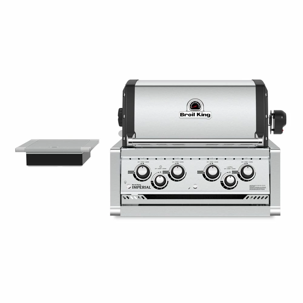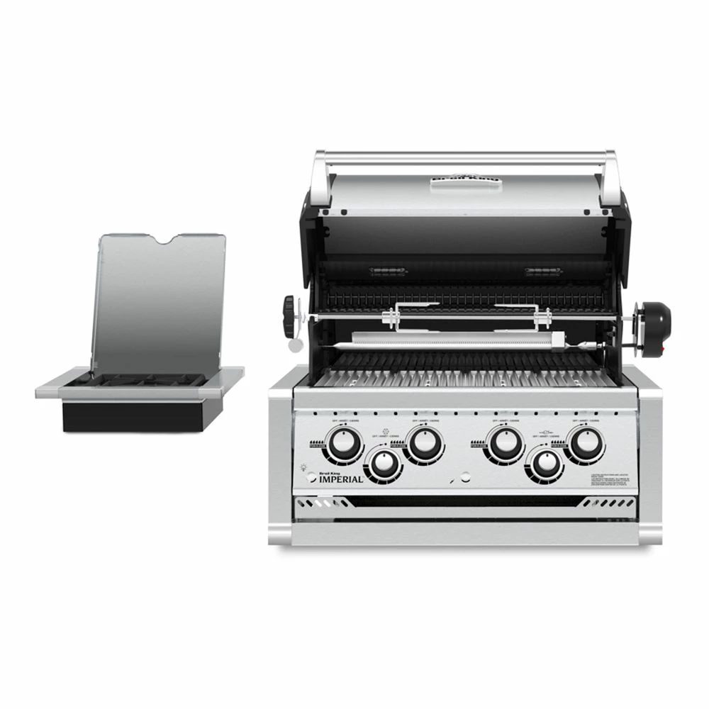 Broil King IMP-490BI Imperial 490 4-Burner Built-In Grill with Side Burner, 26-Inches offers a premium grilling experience for your outdoor kitchen. This grill features die-cast aluminum and high-grade stainless steel construction for proven durability and excellent heat retention. Professional cast stainless steel cooking grids feature a pointed side for perfect steakhouse sear marks and a grooved side for continuous basting. The stainless steel Flav-R-Wave cooking system offers impressive heat distribution across the entire surface of the grill, while drippings that fall onto the Flav-R-Wave system are instantly vaporized. Four Dual-Tube burners feature high quality, heavy-duty stainless steel construction with a tube-in-tube, side-ported design for even heating. Linear-Flow valves with 180-degree Sensi-Touch control knobs offer smooth and simple heat control to precisely control the temperature of your grill.