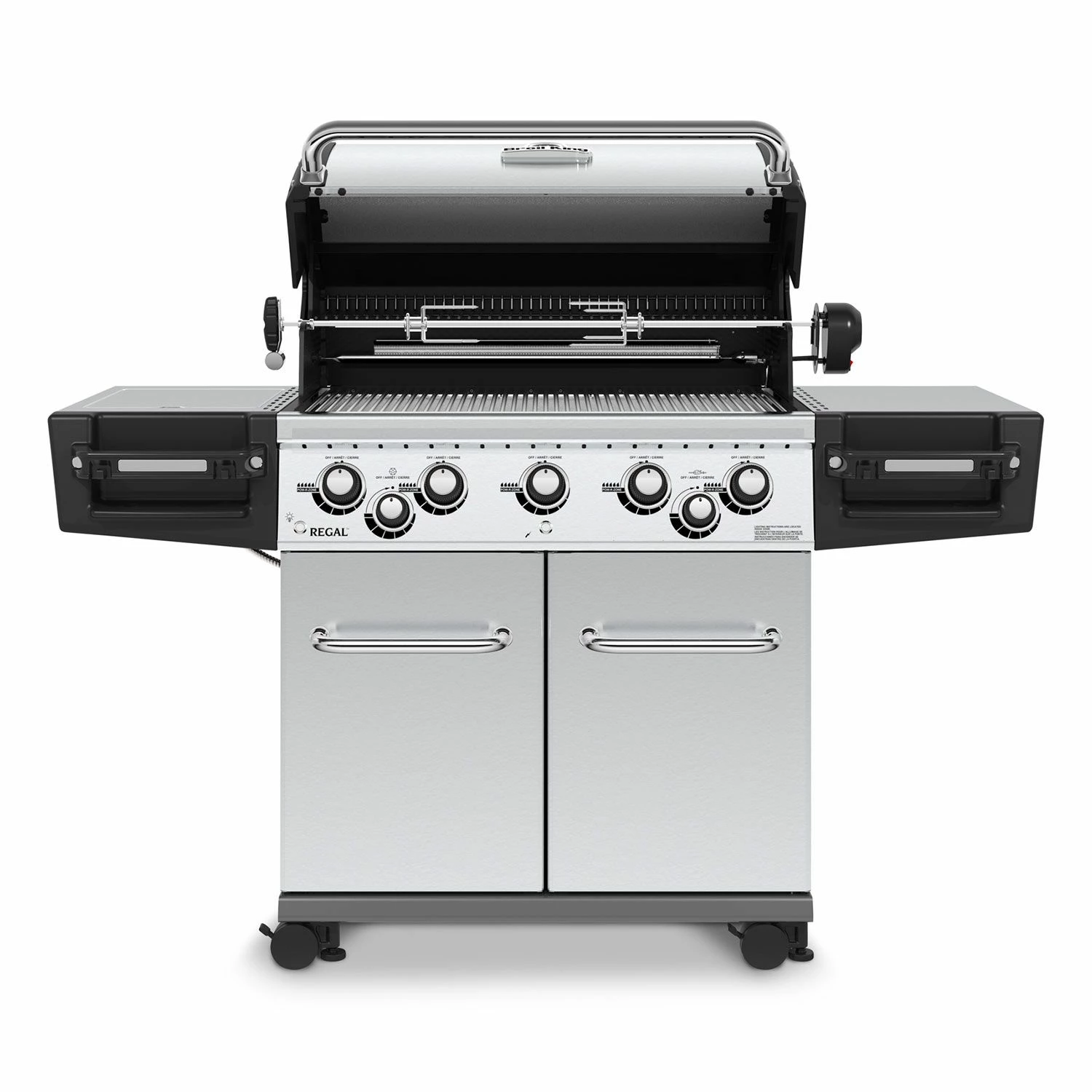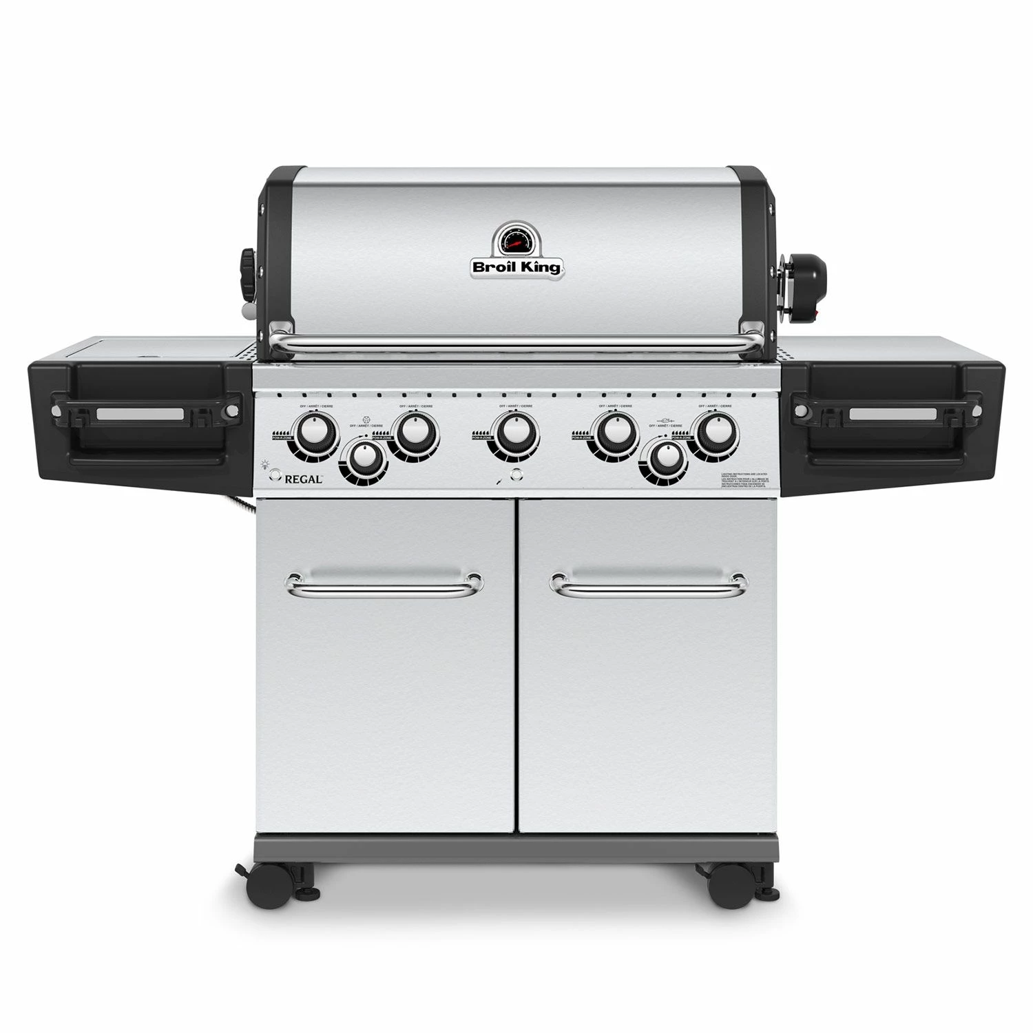 Broil King REG-S590P Regal S590 Pro 5-Burner Freestanding Grill with Side Burner, 32-Inches offers a premium grilling experience for your outdoor kitchen. This grill features die-cast aluminum and high-grade stainless steel construction for proven durability and excellent heat retention. Heavy duty 9mm stainless steel cooking grids feature a pointed side for perfect steakhouse sear marks and a grooved side for continuous basting. The stainless steel Flav-R-Wave cooking system offers impressive heat distribution across the entire surface of the grill, while drippings that fall onto the Flav-R-Wave system are instantly vaporized. Five Dual-Tube burners feature high quality, heavy-duty stainless steel construction with a tube-in-tube, side-ported design for even heating. Linear-Flow valves with 180-degree Sensi-Touch control knobs offer smooth and simple heat control to precisely control the temperature of your grill.