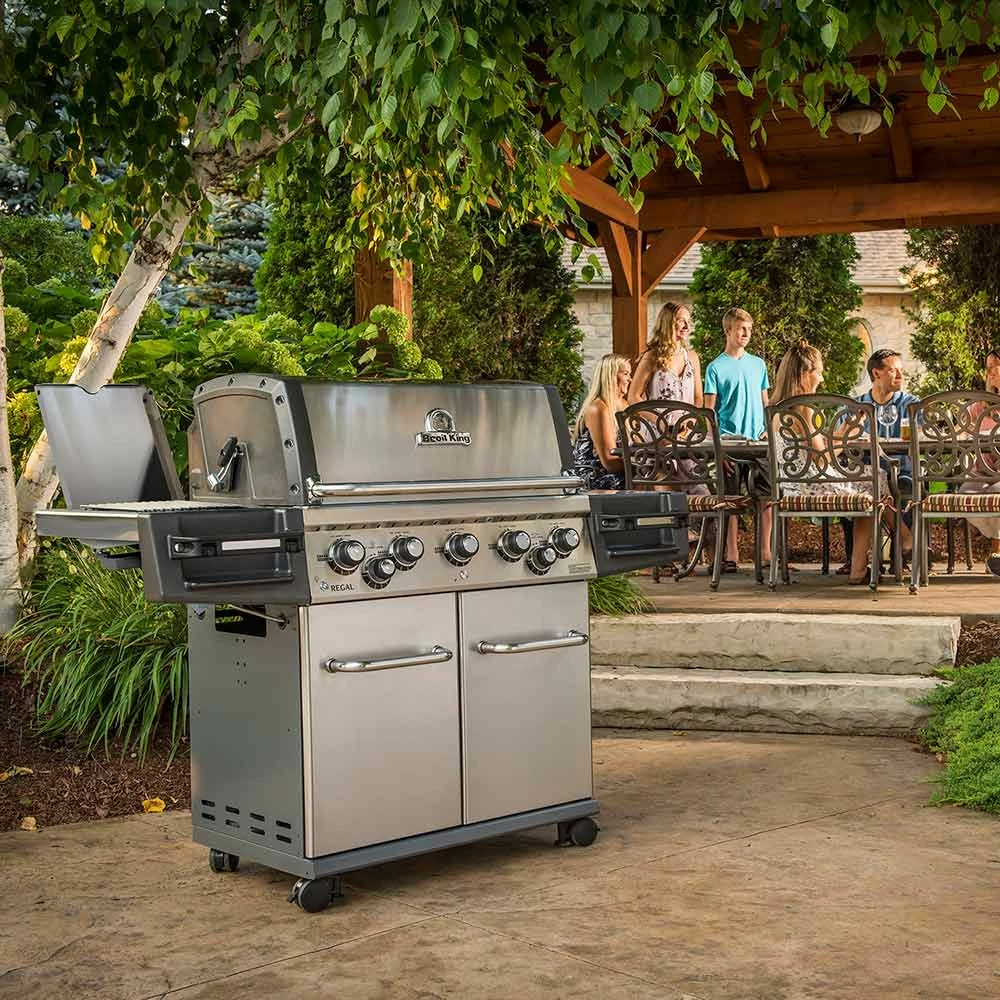 Broil King REG-S590PIR Regal S590 Pro Infrared 5-Burner Freestanding Grill, 32-Inches offers a premium grilling experience for your outdoor kitchen. This grill features die-cast aluminum and high-grade stainless steel construction for proven durability and excellent heat retention. Heavy duty 9mm stainless steel cooking grids feature a pointed side for perfect steakhouse sear marks and a grooved side for continuous basting. The stainless steel Flav-R-Wave cooking system offers impressive heat distribution across the entire surface of the grill, while drippings that fall onto the Flav-R-Wave system are instantly vaporized. Five Dual-Tube burners feature high quality, heavy-duty stainless steel construction with a tube-in-tube, side-ported design for even heating. Linear-Flow valves with 180-degree Sensi-Touch control knobs offer smooth and simple heat control to precisely control the temperature of your grill.