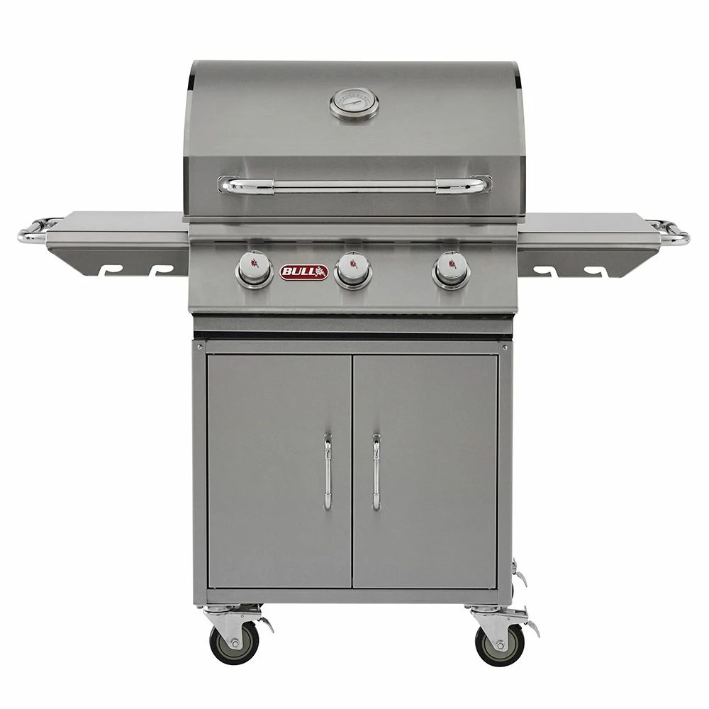 Bull BG-6910x Steer Premium 24-Inch Grill on Cart offers a high performance freestanding grilling machine that combines quality and affordability unlike most others. Bull’s 24-inch Steer BBQ grill boasts 304, 14-gauge stainless steel construction with 3 heavy-duty 15,000 BTU (45,000 BTU total) stainless steel burners for high-performance grilling while the thick stainless steel grates offer high surface area to create the professional style sear marks everyone desires. Bull BBQ’s ReliaBull Technology helps make the most of your grill space and has improved heat distribution by 150% with the help of the Bull flame tamers. The main grilling area combined with an included warming rack provides 556 total square inches of cooking space to ensure enough food space for the entire family while the dual lined grill hood guarantees a flavor lock and great heat retention during cooking. The durable zinc control knobs offer easy flame adjustment while the ultra-reliable piezo ignition offers the simplest of push-and-turn grill startups. The Steer grill cart provides plenty of space for a propane tank and other grilling accessories you may need. The 2 stainless steel side shelves offer areas for food prep while the 4 heavy-duty casters make it much easier to move your grill from one place to another. Do yourself a favor and reward yourself this grilling season with a superior grill station from Bull BBQ.