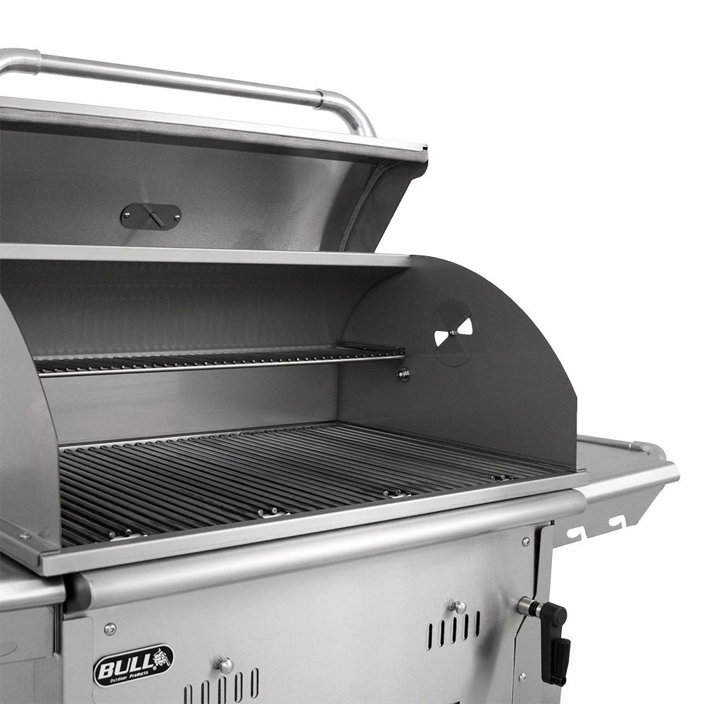 Bull BG-88787 30-Inch Bison Premium Built-In Charcoal Grill offers a high performance built-in charcoal grill alternative for your perfect outdoor kitchen. The 30-inch Bison grill is housed inside premium 304, 18 gauge stainless steel to ensure durability and longevity while the updated vent and gasket system offers greater temperature control and efficient oxygen flow throughout the firebox. The thick stainless steel grates offer high surface area to create the professional style sear marks everyone desires while the adjustable charcoal bed adds to the versatility of a unit that specializes in both low and slow BBQ grilling and high heat searing. The dual lined grill hood guarantees a flavor lock and great heat retention during cooking while keeping grillers safe from the charcoal’s smoke. Do yourself a favor and reward yourself this grilling season with a superior charcoal grill station from Bull BBQ.