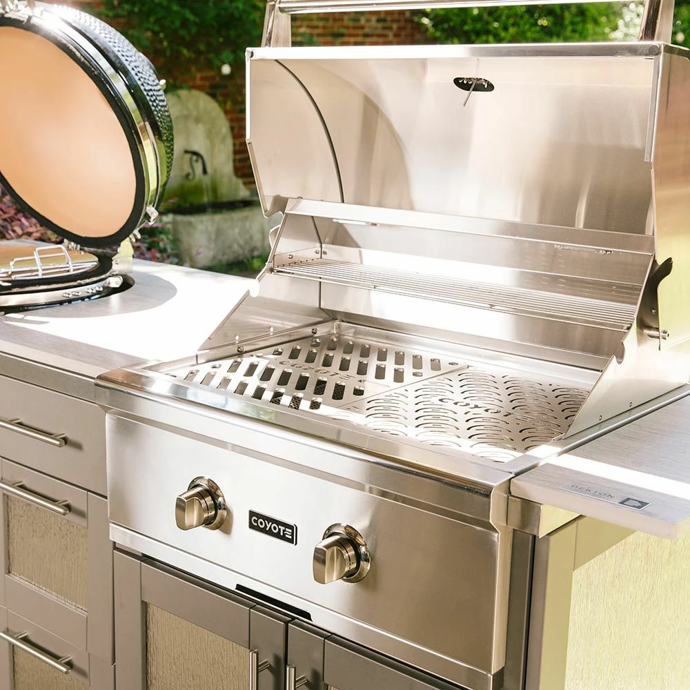 Coyote C-Series Stainless Steel Built-In Gas Grill, 28-Inch (C1C28) provides a premium grilling option for your outdoor kitchen. The Coyote C-Series grill has been manufactured for high performance with two Coyote Infinity Burners designed to put out 40,000 BTU of heat across 585 square inches of cooking space. Complete 304 stainless steel construction ensures heavy-duty durability, while interior grill lighting makes in easier to see the grill surface in low-light conditions. This base grill can also be upgraded with a variety of products and accessories custom built for this grill model (sold separately).