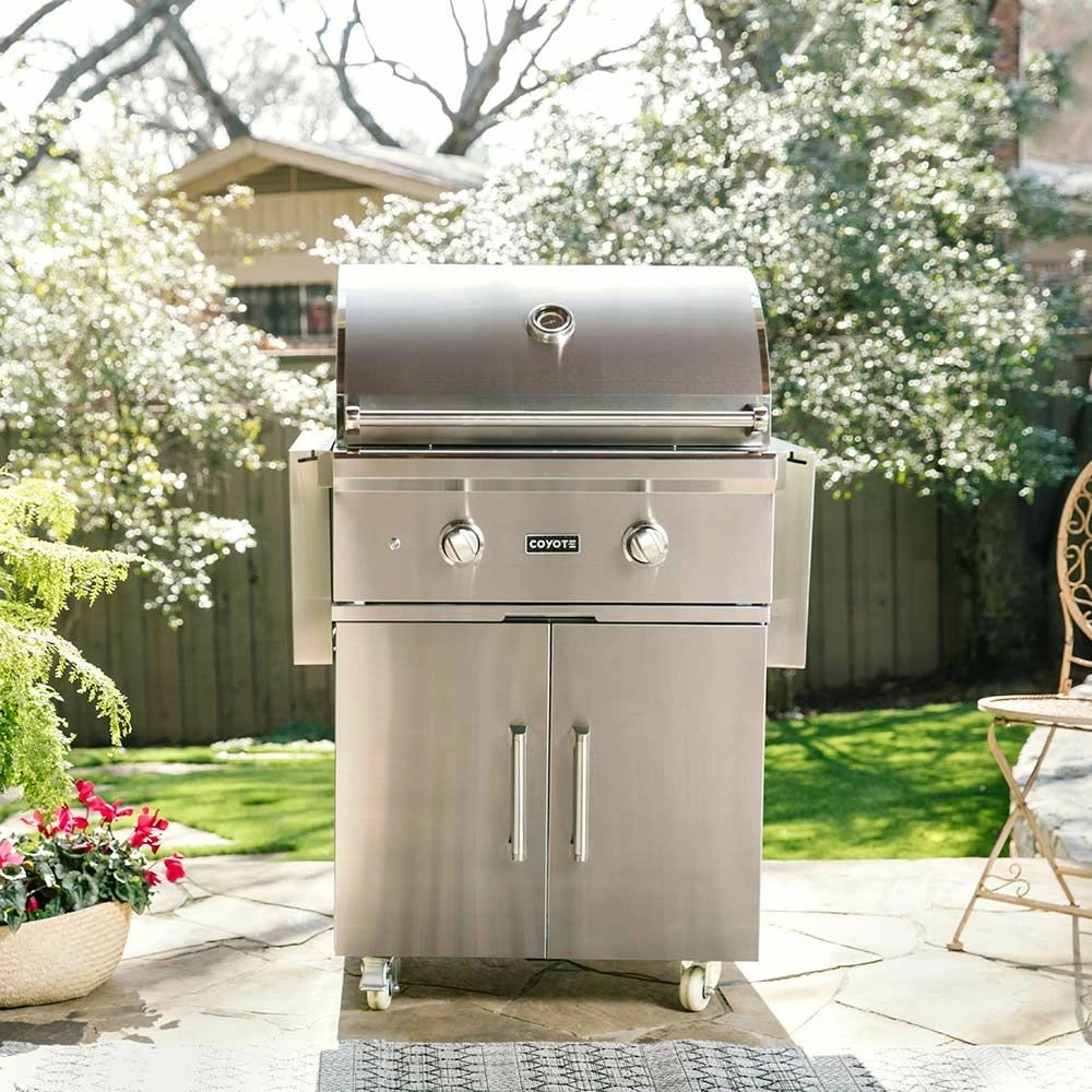Coyote C-Series Stainless Steel Freestanding Gas Grill, 28-Inch (C1C28-CT) provides a premium grilling option for your outdoor kitchen. The Coyote C-Series grill has been manufactured for high performance with two Coyote Infinity Burners designed to put out 40,000 BTU of heat across 585 square inches of cooking space. Complete 304 stainless steel construction ensures heavy-duty durability, while interior grill lighting makes in easier to see the grill surface in low-light conditions. This base grill can also be upgraded with a variety of products and accessories custom built for this grill model (sold separately).