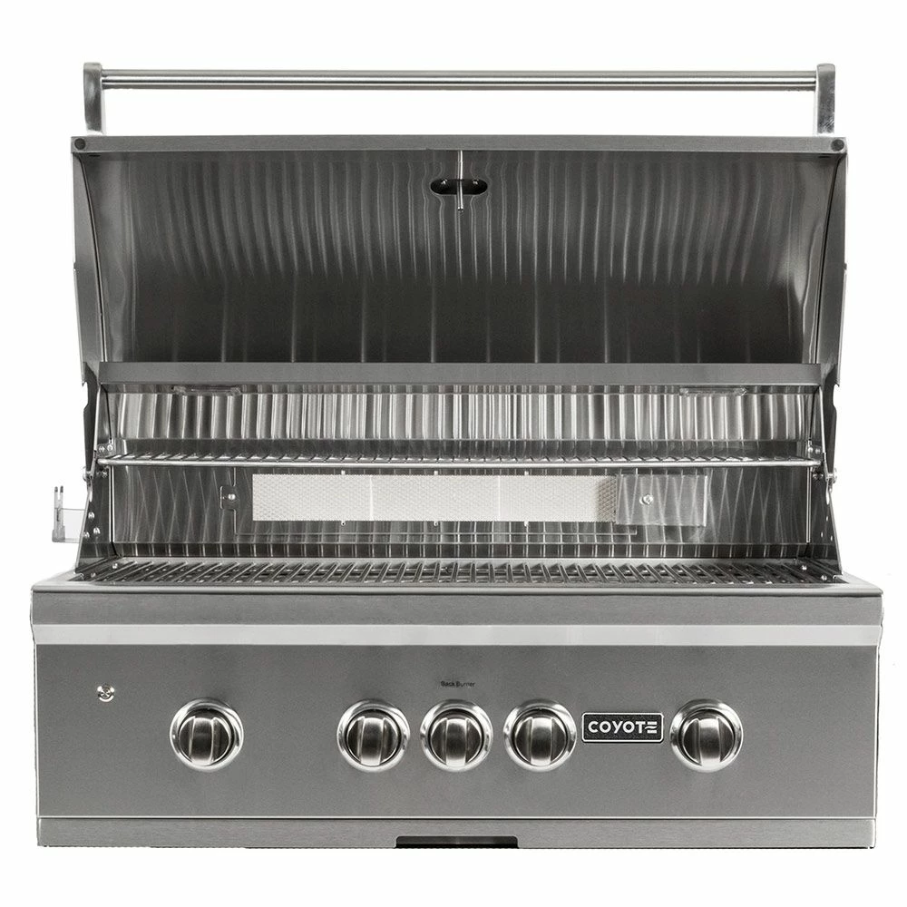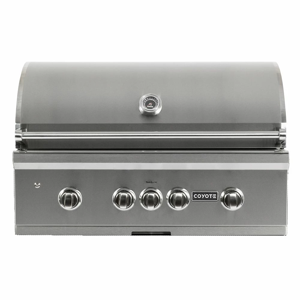 Coyote S-Series Stainless Steel Built-In Gas Grill with Infrared Sear Burner & Rotisserie, 36-Inch (C2SL36) provides a premium grilling option for your outdoor kitchen. The Coyote S-Series grill features complete 304 stainless steel construction and has been manufactured for high performance with three Coyote Infinity Burners, one Coyote RapidSear Burner and one infrared rear burner. Ceramic briquette heat control grids offer supreme radiant heating for better results across all 795 square inches of cooking space, while the included rotisserie kit and smoker box allow for expanded cooking options. Additional features include interior grill lighting for easier visibility in low-light conditions as well as LED illuminated control knobs. This base grill can also be upgraded with a variety of products and accessories custom built for this grill model (sold separately).