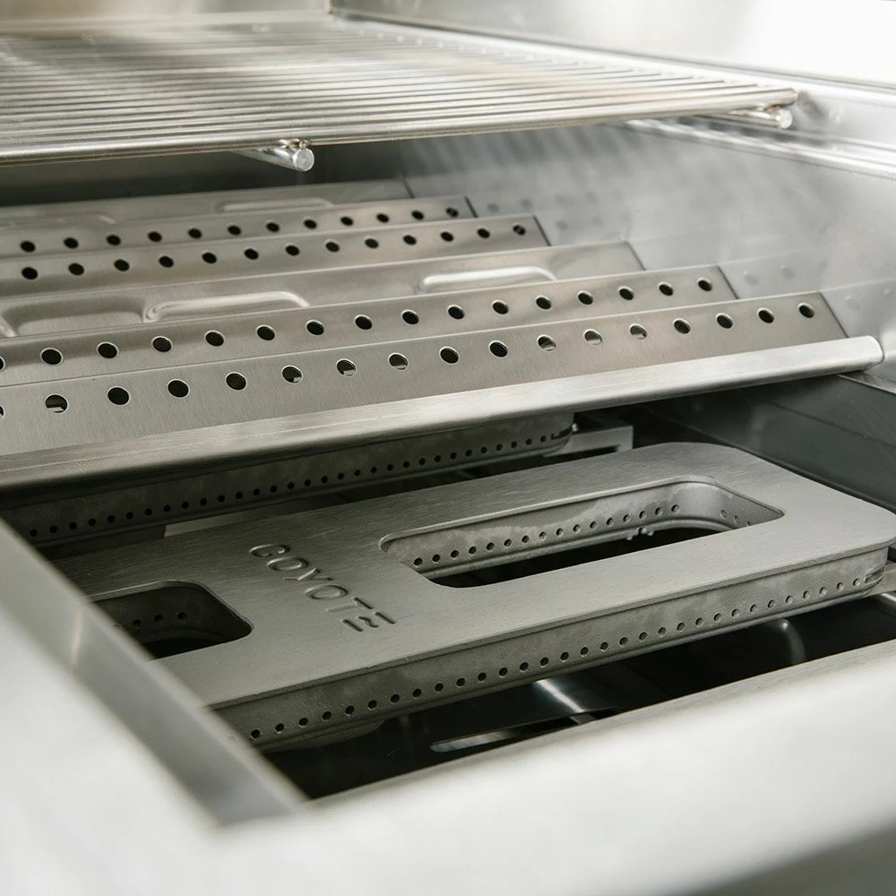 - This grill features three Coyote Infinity Burners, one Coyote RapidSear Burner and an infrared rear burner for ultimate cooking power.