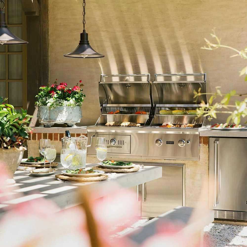 - Two Coyote I-Burners offer up to 40,000 BTU heat output on the gas side of the grill.