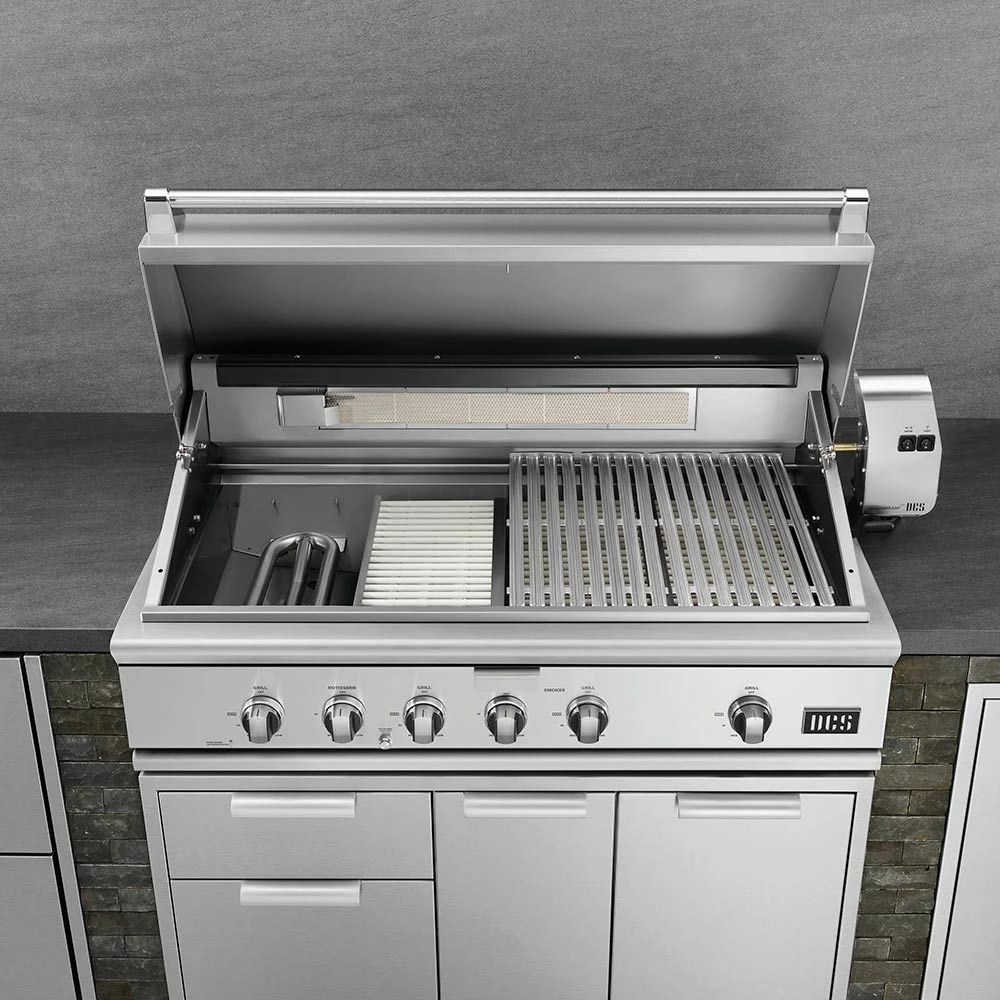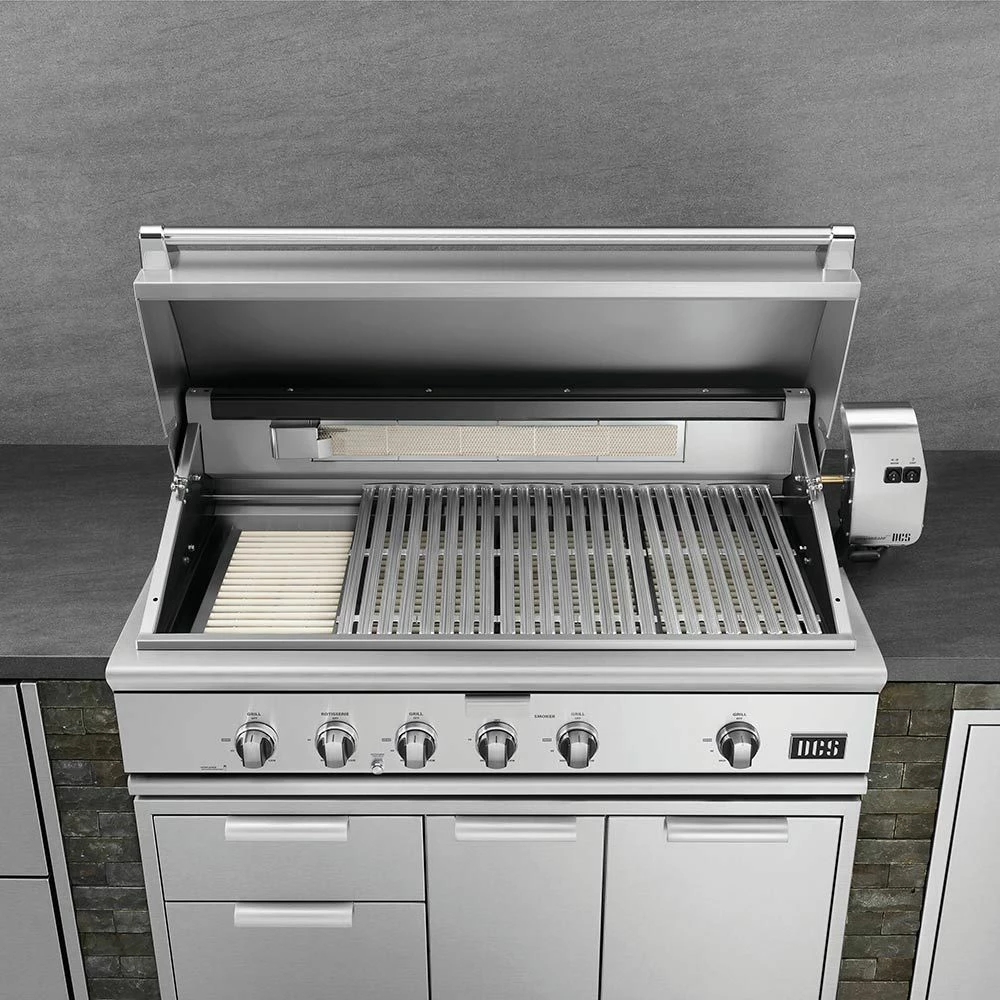 DCS BH1-48R Series 7 48-Inch Built-In Gas Grill with Rotisserie offers one of the most advanced BBQ grills on the market featuring a superior design and high end quality for unparalleled cooking performance. This grill features a complete 304 stainless steel construction to provide maximum durability designed to withstand the rigors of the outdoors. The double sided cast stainless steel grill grates feature one side with a gentle radius for handling delicate foods while the other side features a W shape for perfect sear lines while the patented Grease Management Systemâ„¢ channels grease and oils away from the flames to prevent flare ups and simplify the cleaning process.