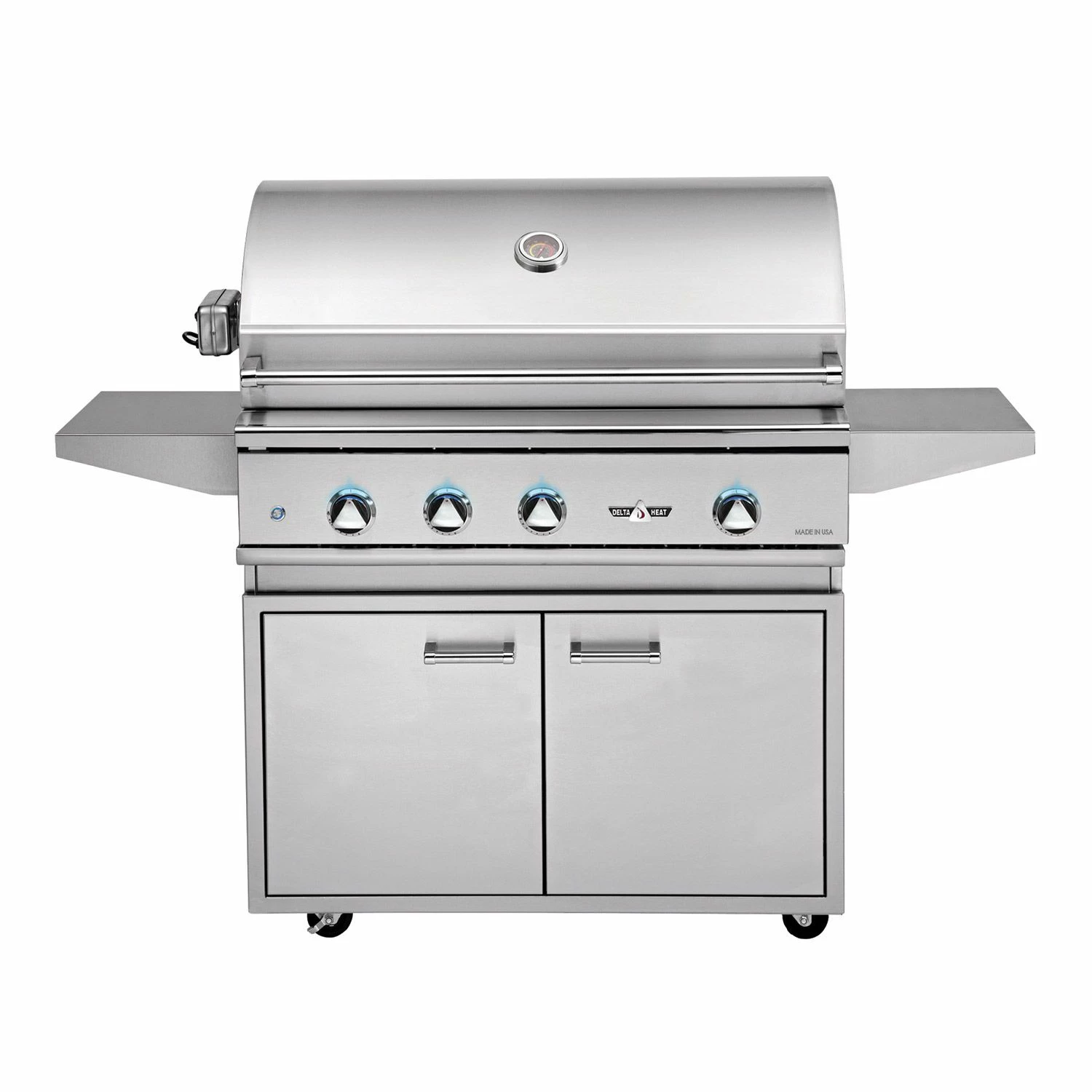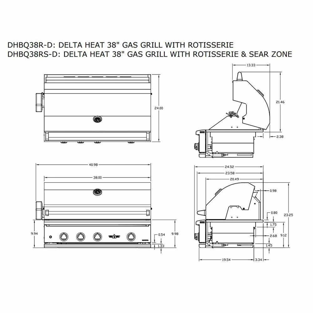 Delta Heat DHBQ38-D Freestanding Gas Grill, 38-Inches provides an large sized grilling surface along with high-end performance sitting atop a stainless steel grill cart with two doors. Featuring three 18-Gauge stainless steel burners and a 625-square-inch grilling space, this grill has been engineered to exceed all expectations. With optional add-ons, such as the Infrared Sear Zone and Infrared Rotisserie, this grill epitomizes what it means to be a high performance BBQ grill to fulfill the needs of any grill enthusiast. Additionally, new light switches and harnesses, an improved temperature gauge, and a heavier gauge rotisserie motor mount make the latest iteration of this grill even better than before.
