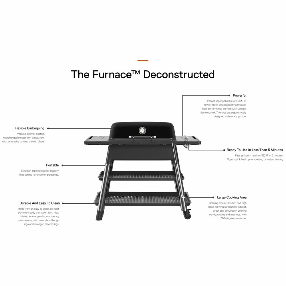 Everdure E3G3 Furnace Freestanding Gas Grill, 46.25-Inches provides a powerful 3-burner freestanding gas grill able to meet your outdoor grilling needs. This grill features 3 stainless steel burners which provide 463.5 squared inches of cooking area–plenty of room for BBQ! Additionally, the high hood allows for multiple direct, indirect and convection cooking methods with 360 degree circulation, making this grill versatile to suit your style of cooking. The die-cast aluminum body is coated with UV rated gloss paint, allowing a contemporary look and easy clean up without sacrificing durability. Get instant searing with 27,000 BTU of power and its fast ignition which is ready in minutes. The Everdure Furnace Freestanding Gas Grill has enough power to handle all you throw at it.