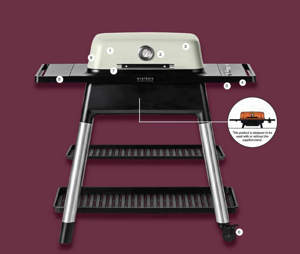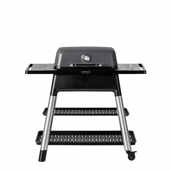 Everdure HBG2 Force Freestanding Gas Grill, 46.25-Inches provides a high quality gas grill that’s just as functional as it is stylish. The easy-to-clean die cast aluminum grill body ensures top notch durability and longevity that is rust proof and offers a flowing design that has 5 different color options that can match any home’s color palette. With a lightning fast ignition and instant searing, this grill creates a cook-ready environment in only 5 minutes while the variable flame control gives the user total control of the unit. The Force features 2 powerful independent burners capable of up to 24,000 total BTU. The extra high grill head allows for more air flow and easier convection cooking when closed. The grill hood and cast iron plates are enamel coated for durability and an easy clean. With 928 square inches of cooking area, a storage shelf, removable tapered legs for great stability and portability and a seamless design, The Force offers an ideal everyday gas grill. The unit comes propane ready and a natural gas conversion kit (HBG2NGCK) can be purchased separately.