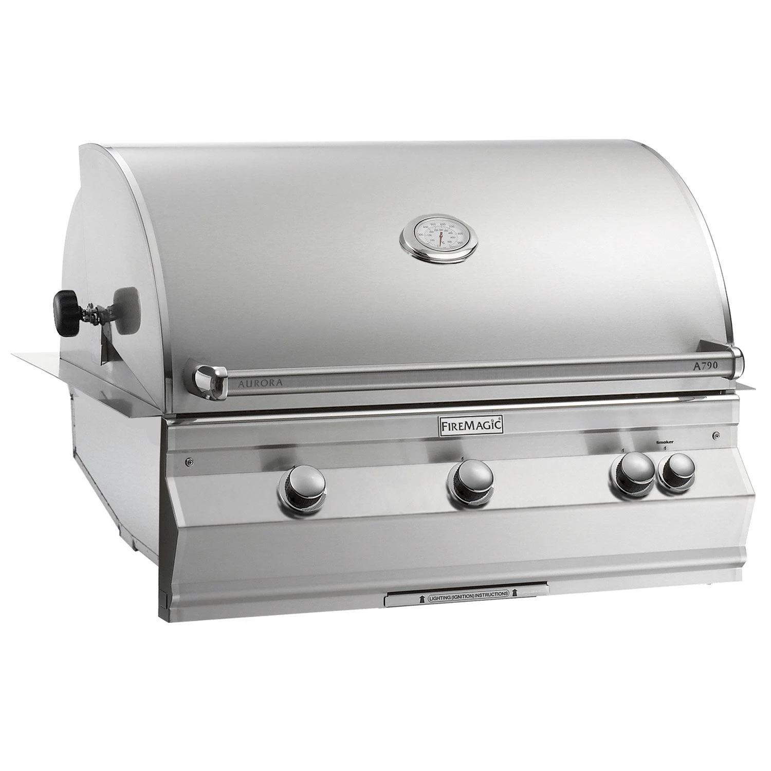 Fire Magic A790i Aurora Built-In Grill provides a high end grill that’s crafted for cooking versatility, durability and longevity–truly a grill of superior design and engineering. The complete 304 stainless steel construction is highlighted by the cast stainless steel “E” burners capable of up to 30,000 BTU each. Fire Magic’s Diamond Sear Cooking Grids provide optimal heat transfer, while the 16-gauge stainless steel flavor grids are specially designed to provide even heat distribution and prevent hot and cold zones. These multipurpose grids also protect the burners from grease and drippings for enhanced performance. The modest 792in² grilling surface offers plenty of grilling area while the integrated 20,000 BTU back burner comes with a heavy duty rotisserie kit for professional style cooking.
