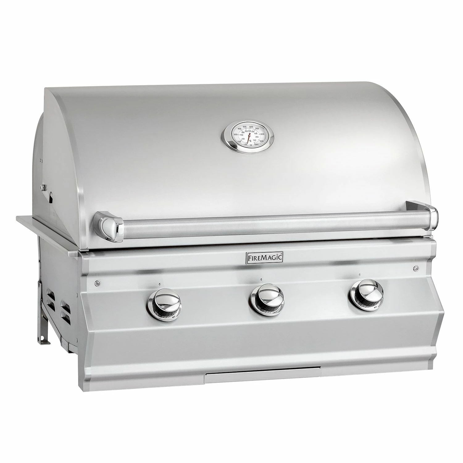 Fire Magic C540i Choice Built-In Gas Grill, 30-Inch provides a superior built-in gas grill to help complete the ultimate patio paradise. Complete 304 stainless steel construction ensures a long lasting and durable product, while the Rapid Light electronic ignition provides a simple startup every time you’re ready to grill. Each of the (3) heavy gauge cast stainless steel burners provide an impressive 23,000 BTU output to offer some serious heat, while the analog thermometer keeps an accurate eye on the cooking temperature across the 540in² primary grilling surface. This grill features Fire Magic’s patented Diamond Sear Cooking Grid designed to optimally transfer heat from burners to the cooking surface to ensure your food cooks faster and more evenly, while Choice Flavor Grids assist with heat distribution and reduce flare-ups. A 90-degree double-walled hood provides efficient heat retention, while a Teflon-coated spring assist makes the hood easy to open to round out an impressive feature package. The high quality construction of the grill is equaled only by its beautiful design, featuring a satin stainless steel face plate to separate this Fire Magic grill from the rest of the pack.