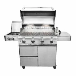 Saber R67CC1117 4-Burner Deluxe Freestanding Infrared Grill With Side Burner, Black, 40-Inches