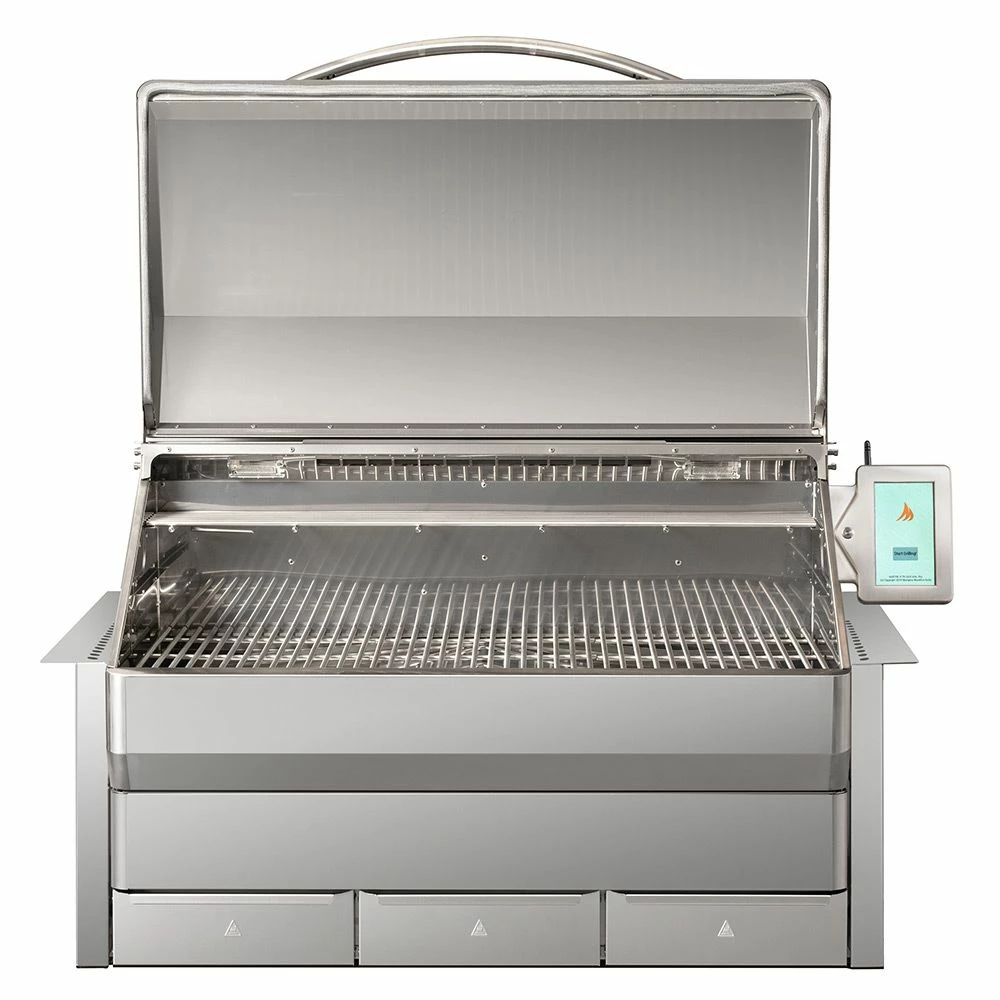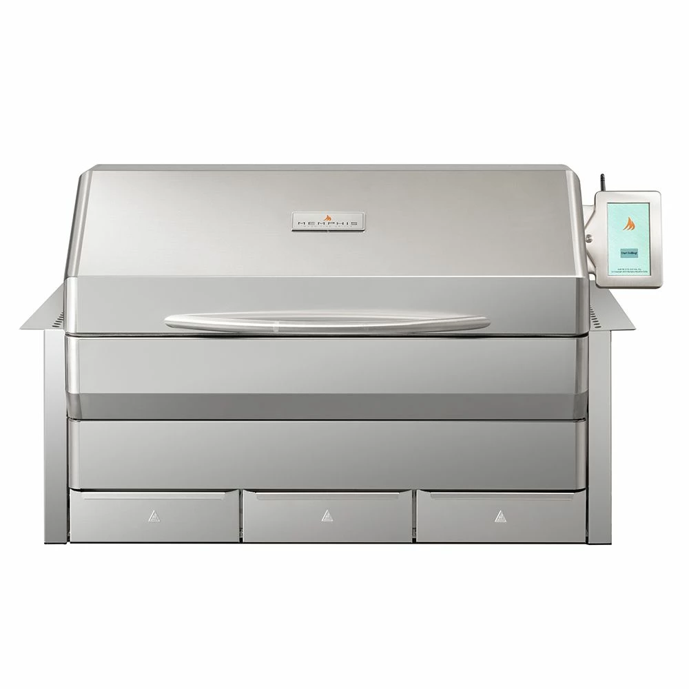 Memphis Grills VGB0002S-ITC3 Elite ITC3 Built-In Wood Fire Pellet Smoker Grill, Wi-Fi Controlled, 304 SS Alloy combines high quality construction and innovative features to create one of the most advanced pellet smokers on the market. An upgrade of the original Elite model, this pellet grill features new IntelliBurn technology, which uses a secondary combustion system to create more heat while using less fuel, giving you more mileage for your money. The heavy duty 304 stainless steel construction ensures a long lasting and durable product while the 6mm nickel-plated steel cooking grates create a non-stick cooking surface that’s perfect for smoking and grilling alike. The dual wall firebox and oven quality gasket create a tight seal to provide a well-insulated cooking area while the 24-pound hopper capacity allows for up to 62 hours of uninterrupted cooking time. The 848-square-inch cooking area (up to 1,256 with optional grates) can be heated from 180°F to 700°F all controlled through the integrated Wi-Fi controller and the free Memphis Mobile App available for both iOS and Android, the corresponding ITC temperature probe offers the ability to closely monitor the internal temperature of your food for professional style results.