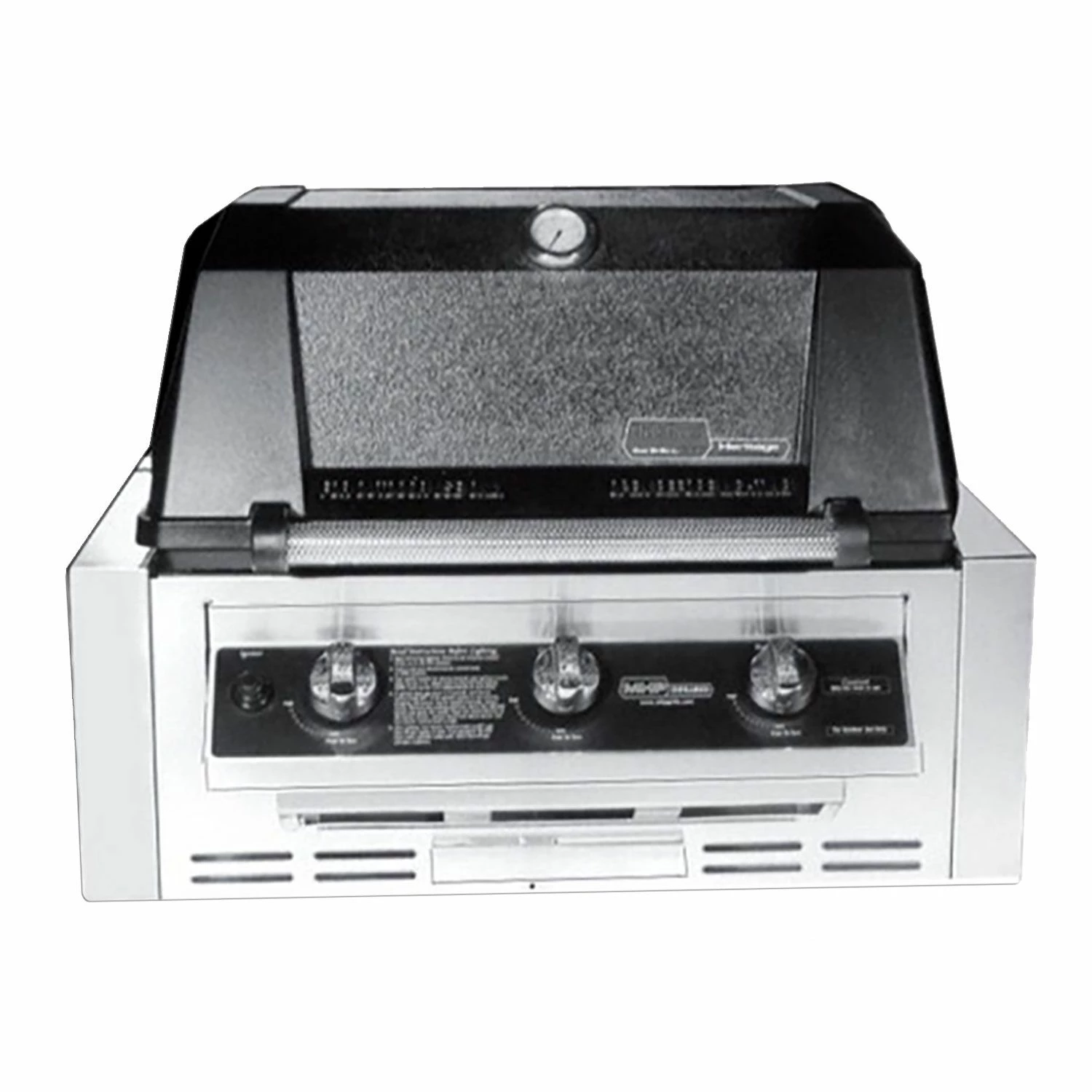 Modern Home Products W3G4LS Tri-Burn Built-In Gas Grill with SearMagic Grids, 27-Inch offers a premium built-in gas grill option that combines hand-crafted, high quality materials with superior function and timeless tradition. The grill features cast aluminum construction to provide a durable housing and grill bottom that promotes heat retention and rust resistance while the rolling Sta-Kool stainless steel hood handle makes opening your grill a breeze. This unit includes aluminum rust-free SearMagic grids and a stainless steel swing-away warming rack. The reversible SearMagic technology is characterized by one wide-ribbed side for achieving professional sear lines and one smooth side for foods such as fish or vegetables. The unique Tri-Burn system consists of 3 cast stainless steel burners and flavor plates that work together to create 35,000 BTU of power. The individual temperature controls this option provides gives the griller maximum flexibility when cooking. This built-in grill includes the required stainless steel grill enclosure sleeve. All of this, in addition to the 433 square inches of main cooking area and built-in temperature gauge, makes it is easy to see why the W3G4 from MHP is an ideal grilling option for anyone needing complete burner independence. Upgrade your grill with an Infra-Roast Rear Rotisserie Burner.