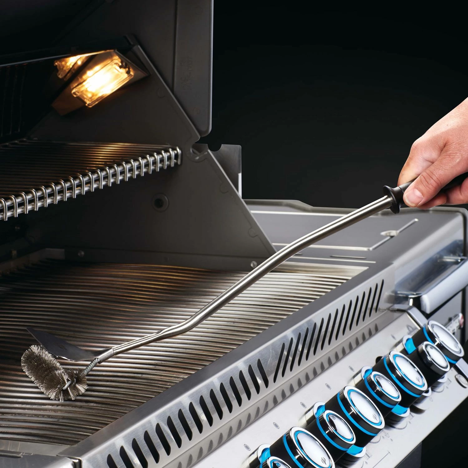 Napoleon 62054 Stainless Steel Cleaning Brush-Bristles provides a premium accessory for your outdoor kitchen. This bristle brush keeps your grill grids clean with industrial strength construction, heavy-duty bristles, and a built-in grid scraper. This brush also includes an integrated storage hook to ensure your grid brush is close by when you need it. This brush offers a wider head than standard grill brushes, which allows users to clean more grill in one motion. Upgrade your grilling game with help from Napoleon.