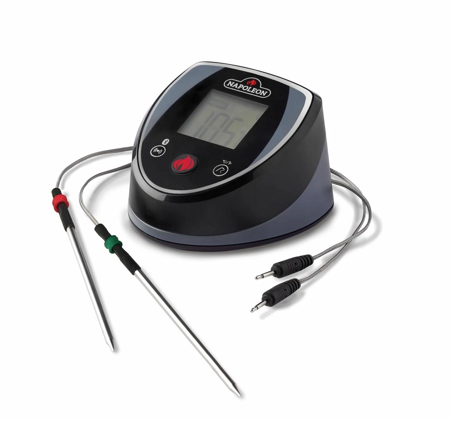 Napoleon 70077 ACCU-PROBE Bluetooth Thermometer provides a premium accessory for use with your grill. Featuring dual probes, this tool can be used to simultaneously measure core temperature and ambient temperature between -4 degrees and 400 degrees Fahrenheit. For enhanced accuracy, two additional probes can be added (sold separately). This Bluetooth thermometer connects to Napoleon’s free iOS or Android app for convenient temperature readouts. The unit also features a large display to read temperature directly on the thermometer.