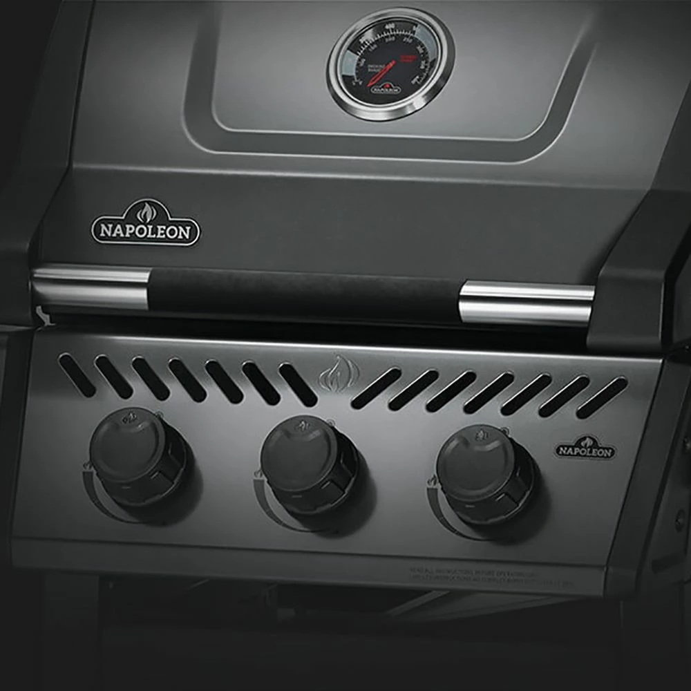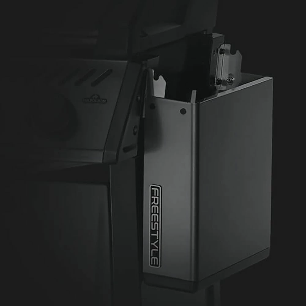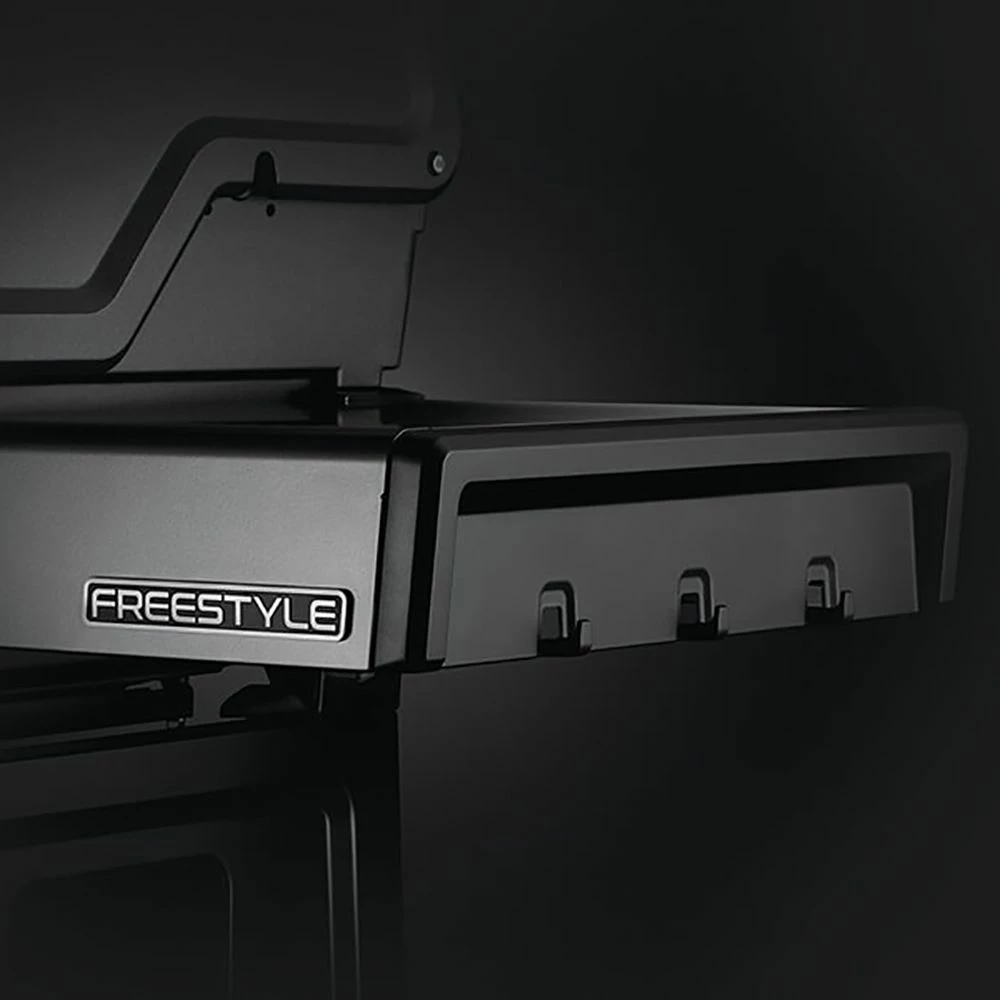 Napoleon F365DGT Freestyle 365 Gas Grill On Cart serves up a high-quality grill that combines innovative tech with modern convenience features for a top-notch cooking experience. Napoleon’s signature JETFIRE ignition ensures an easy and reliable start up every time, and the iconic Wave cooking grids built from porcelain-coated cast iron provide the kind of sear marks every grillmaster loves to see. The foldable side shelves feature tool hooks and a built-in bottle opener for an all-in-one backyard hub.