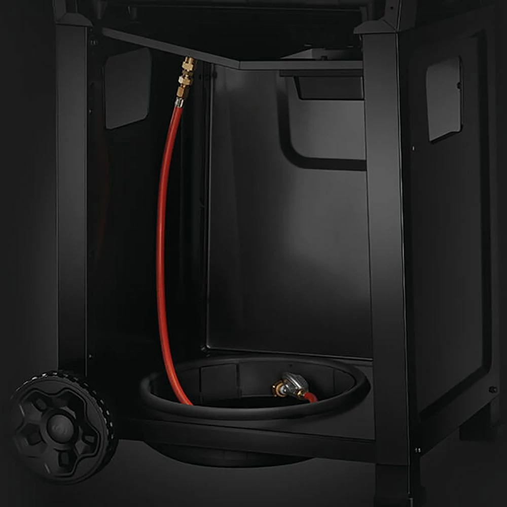 - Enclosed cart design secures the propane tank and protects it from the elements