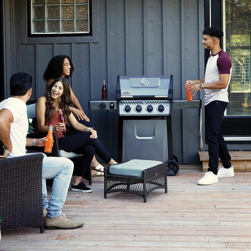 Napoleon F425DSBPGT-ECP Freestyle 425 Gas Grill on Cart with Side Range Burner, Propane serves up a high-quality grill that combines innovative tech with modern convenience features for a top-notch cooking experience. Napoleon’s signature JETFIRE ignition ensures an easy and reliable start up every time, and the iconic Wave cooking grids built from porcelain-coated cast iron provide the kind of sear marks every grillmaster loves to see. The side range burner offers a perfect platform for cooking up sides and sauces right on your grill for an all-in-one backyard hub.