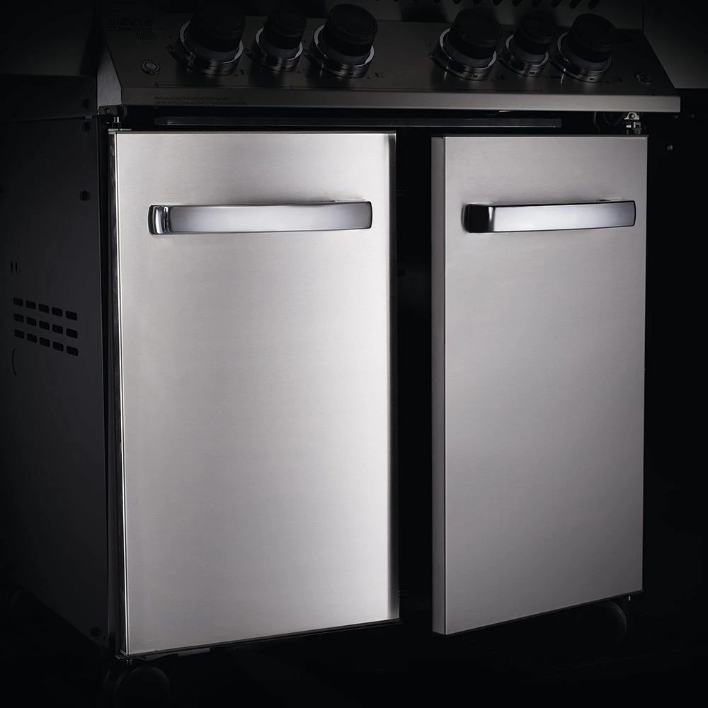 The patented “S” style wave grill grates are a signature of Napoleon grills and feature a 7.5mm thick 304 stainless steel construction to provide long lasting durability and allow professional style grill marks. The unique Flame Throwing ignition provides a simple and reliable ignition by “shooting” a flame to the burners, making startup a breeze. The infrared back burner is rated for 18,000 BTU to allow professional style rotisserie cooking with the heavy duty rotisserie kit and the side infrared “Sizzle Zone” is rated for 14,000 BTU and can reach up to 1,800 F to achieve steakhouse quality searing. The stainless steel side shelves feature integrated tool hooks for convenience and the (4) heavy duty casters allow easy mobility and lock to stay in place. Grillers will enjoy the Safety Glow LED back-lit control knobs that turn from blue to red while the burners are in use to make for a safe grilling experience.