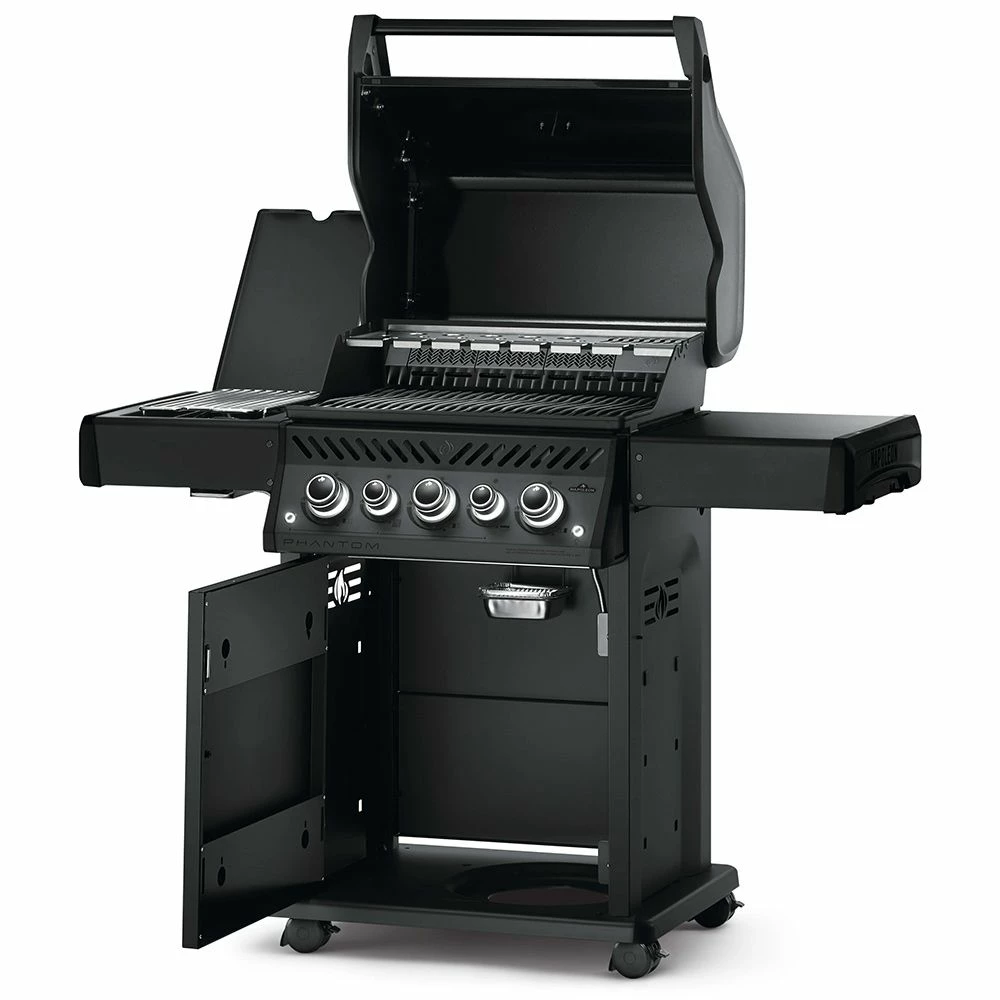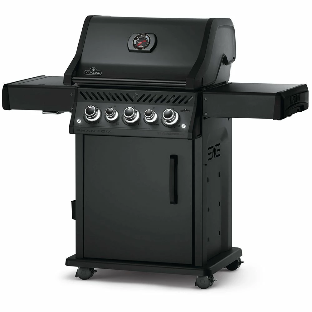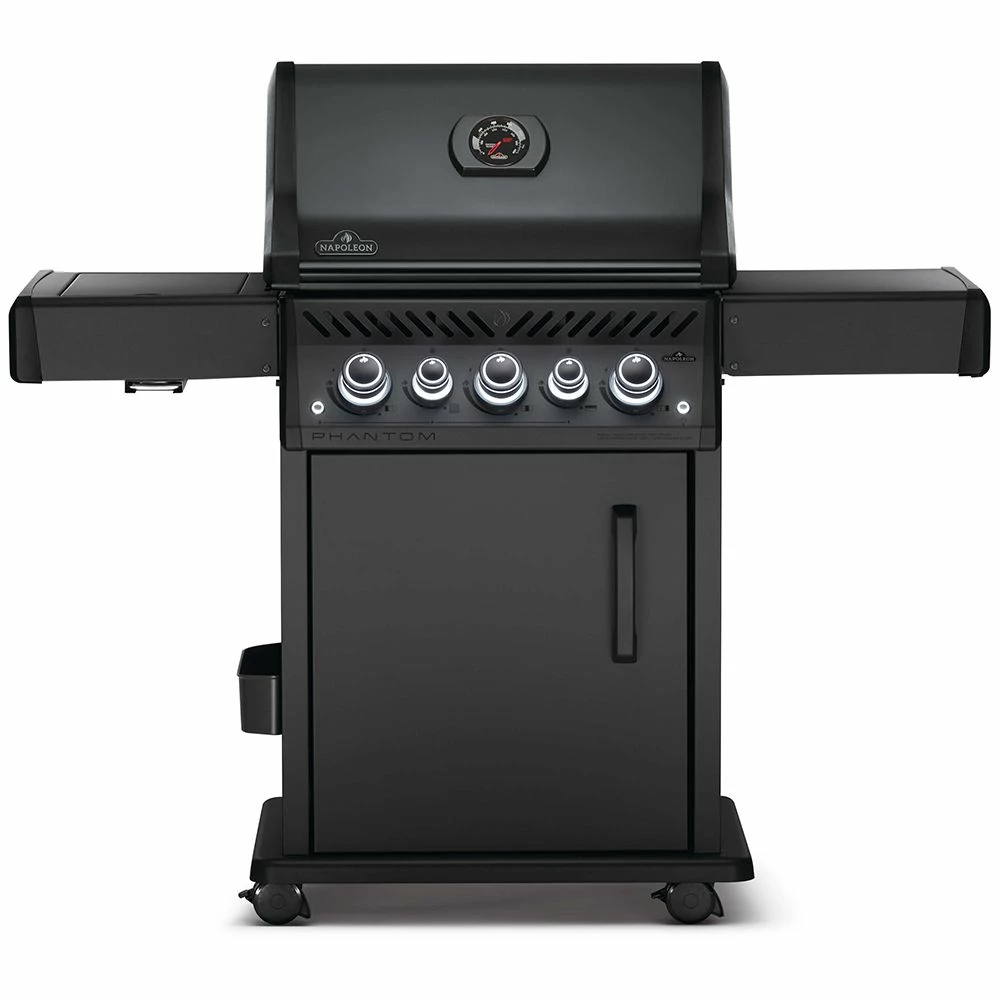 Napoleon RSE425RSIBK-1-PHM Phantom Rogue SE 425 Gas Grill On Cart with Infrared Side and Rear Burners offers an impressive grilling package in a modern matte black design. Featuring durable stainless steel construction, the Napoleon Rogue SE will be a mainstay at your backyard barbecues for many years to come. Featuring three main burners, a rear rotisserie burner, and a high top lid, this grill offers dynamic cooking potential as well as a convenient design. An integrated sear station helps create restaurant-style results, while generous side shelf space ensures you’ll always have plenty of room to add finishing touches when prepping your meals.