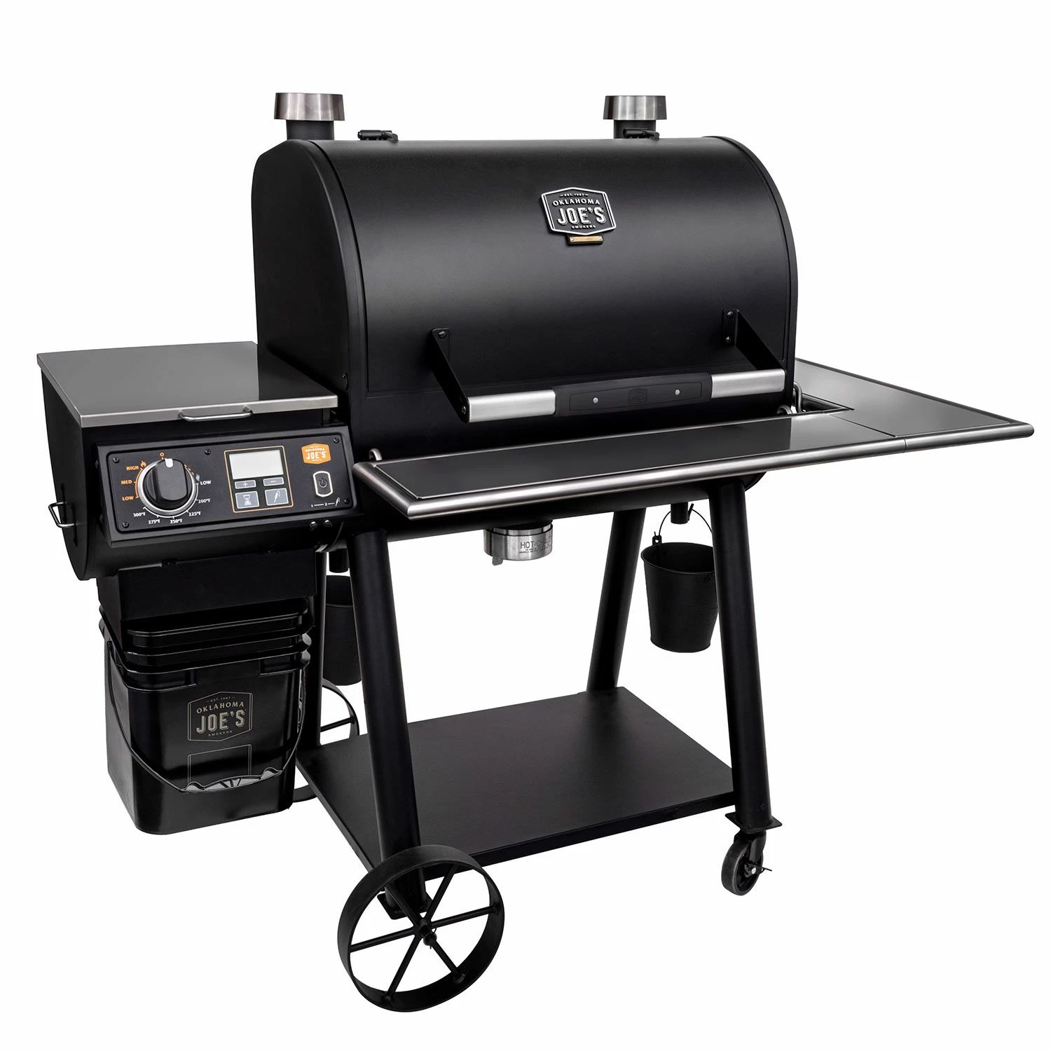 Oklahoma Joe’s OKJ-21202125 Anthem Series Rider DLX Pellet Grill provides a premium grill for your next barbecue. Heavy-duty cold-rolled steel construction with a high-temperature paint offers impressive durability for many years of delicious meals. Take the guesswork out of grilling with the impressive Pit Control System, a smart cooking guidance system to monitor time and temperature for professional–and easily repeatable–results. This grill offers a wide temperature range from 175 degrees Fahrenheit for low-and-slow cooking all the way up to a 650-degree sear mode and everything in between. The Flex Grate and Flex Rack Systems integrate easily for multiple cooking configurations, while the tall-body smoking chamber increases overall capacity to more than 1,200 square inches of cooking space.