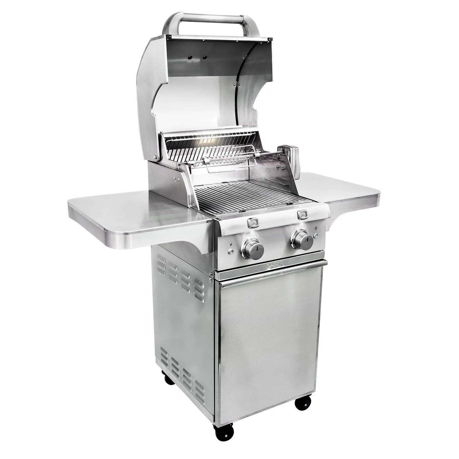 In addition to the main grill head, this freestanding grill features a premium grill cart with 304 stainless steel construction for superior durability. A stainless steel pull-out tank tray and in-cabinet condiment basket offer added convenience to complete an already impressive package.