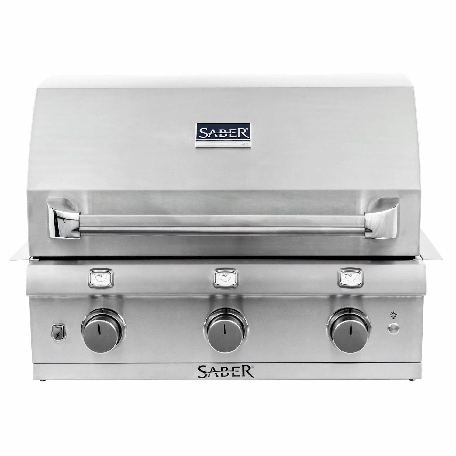 Saber R50SB0417 3-Burner Premium Built-In Infrared Grill, 32-Inches provides a premium addition to your outdoor kitchen. This grill brings restaurant quality results to your home with its patented Saber Cooking System. This innovative burner design heats evenly, eliminates flare-ups, and uses up to 30 percent less gas than comparable burners. This grill also offers a wider temperature range than traditional grills–from high temperature searing to low and slow roasting and everything in between. The Saber infrared can also pre-heat to searing temperatures in only 12 minutes to reduce the time it takes to get your food from grill to plate. When you’re finished grilling, the easy-to-clean design of the Saber grill allows food drippings to be burned off and brushed away with ease to save you even more time.