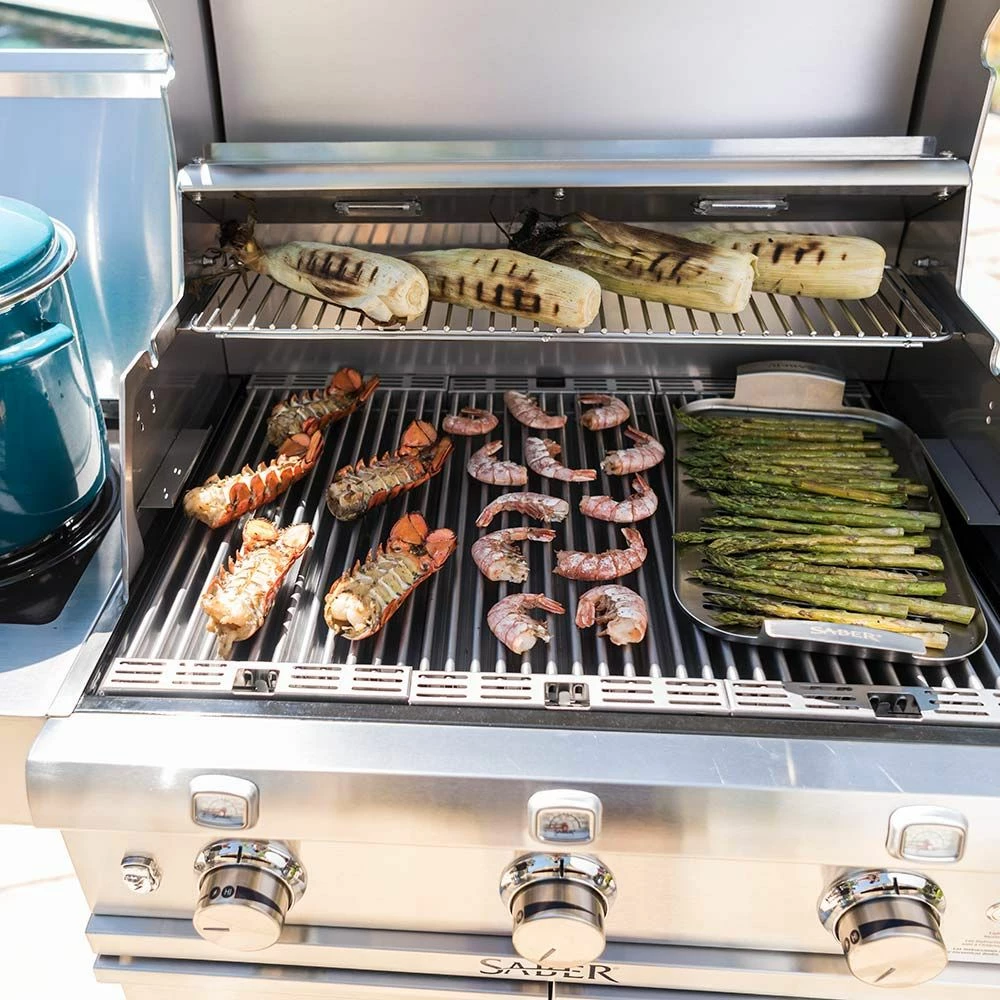 With its heavy duty 304 stainless steel construction, this Saber Stainless Series grill offers a time-tested design. A seamless welded stainless steel lid provides weather resistance as well as a quality appearance, while a multi-functional stainless steel warming rack offers versatility for your outdoor kitchen. Rounding out this grill’s impressive design is its internal halogen lights for improved nighttime visibility to give you everything you need for a premium grilling experience.
