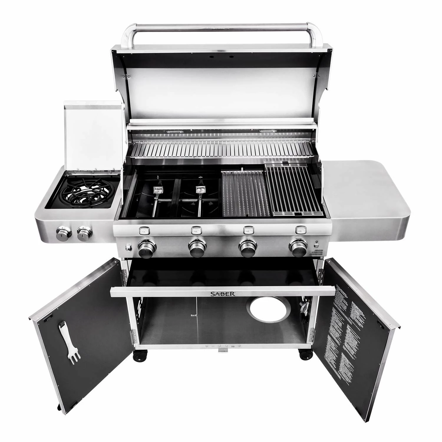With its heavy duty 304 stainless steel construction, this Saber Stainless Series grill offers a time-tested design. A seamless welded stainless steel lid provides weather resistance as well as a quality appearance, while a multi-functional stainless steel warming rack offers versatility for your outdoor kitchen. Rounding out this grill’s impressive design is its internal halogen lights for improved nighttime visibility to give you everything you need for a premium grilling experience.