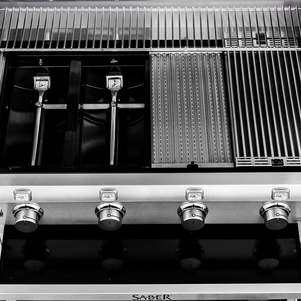 - Innovative Design – Saber Cooking System heats evenly, eliminates flare-ups, and uses up to 30 percent less gas than comparable burners