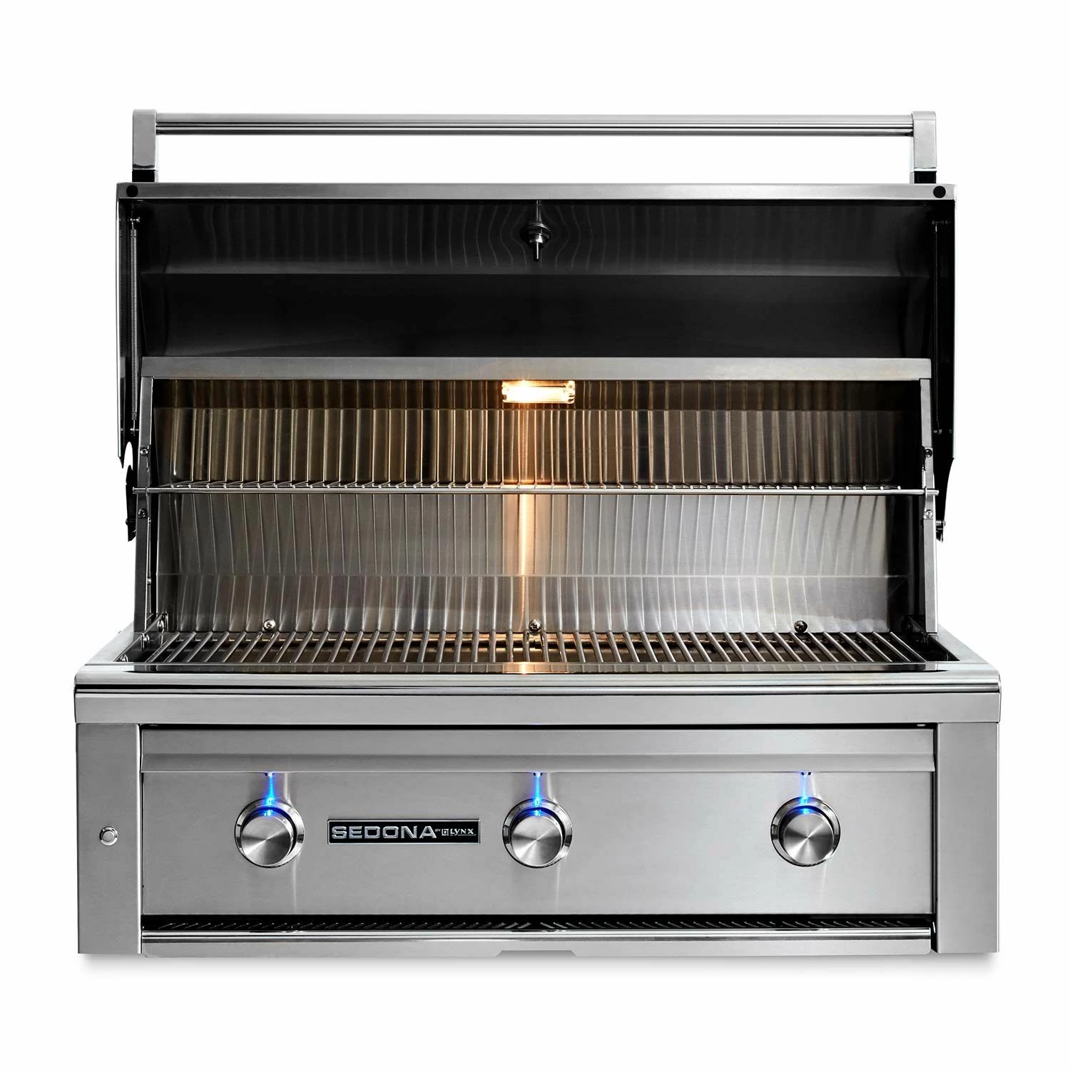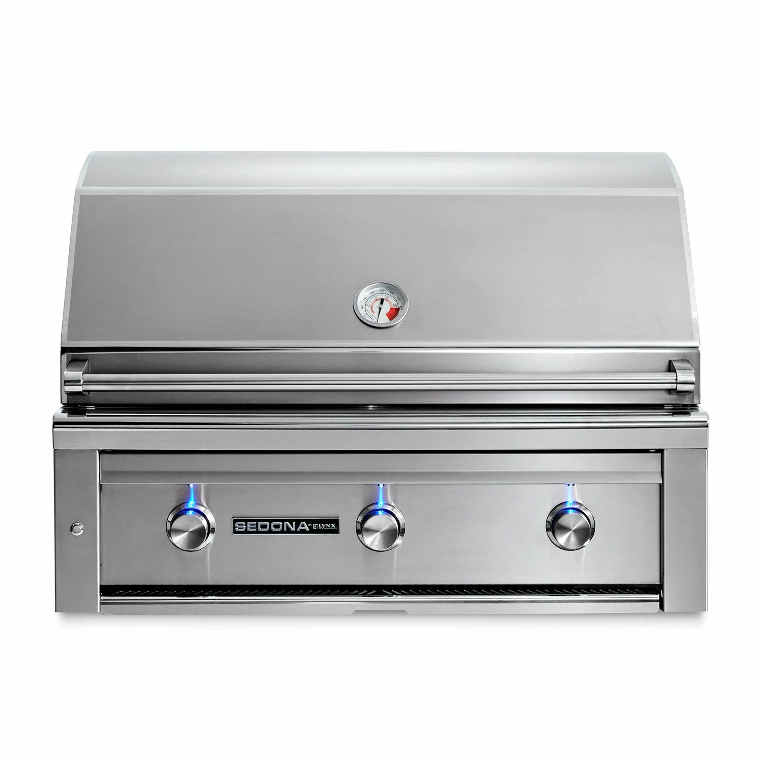 Sedona By Lynx L600 36-Inch Built-In Gas Grill provides a superior blend of innovative features and professional craftsmanship to create one of the most advanced grills on the market. This BBQ grill features a heavy 201 stainless steel construction with smooth welded joints and polished mirrored edges for a blend of style and durability that will stand up to the elements in any climate. Designed for professional-style performance, the grill features heavy duty stainless steel tube burners to provide extreme high heat across the grilling surface. The traditional tube burners sit below a rack of ceramic radiant briquettes to provide a charcoal-like infrared heat for an enhanced gas grilling experience that’s evenly distributed across the grill surface. With LED backlit control knobs, internal halogen grill lights, an optional rotisserie system with infrared rear burner, and a spark ignition, this unit combines all of the requisite features of a high-end grill and then some – so you can create the best barbecue.