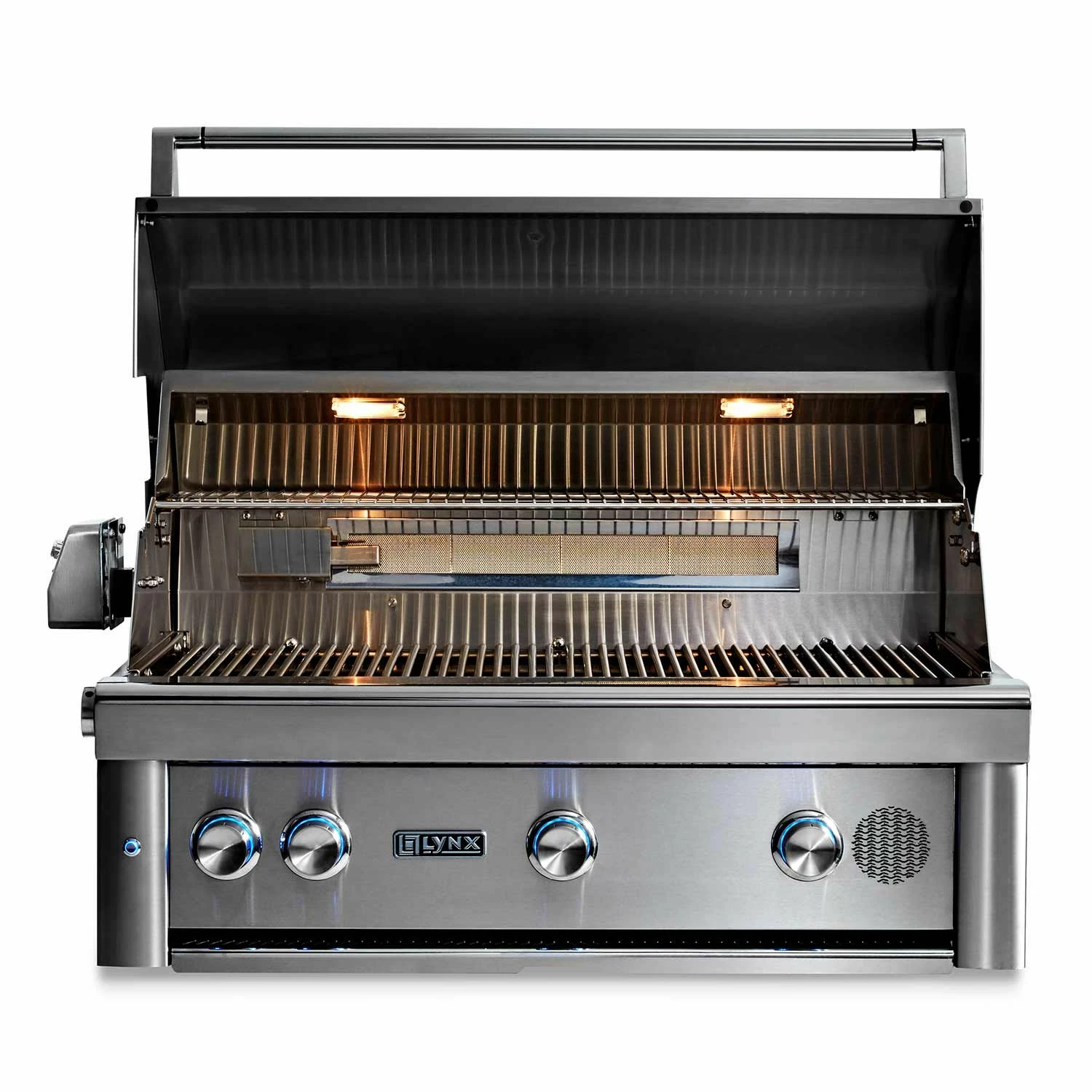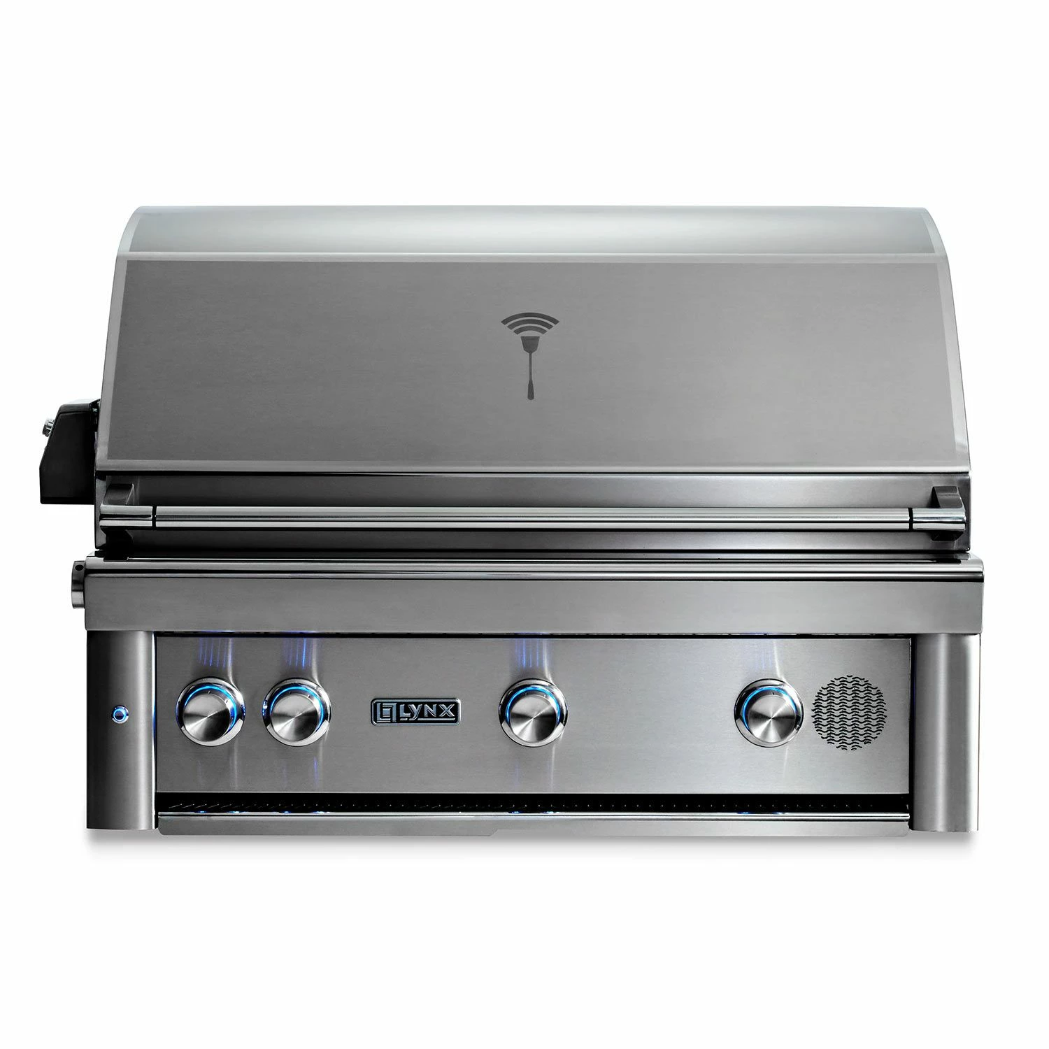 Smart Grill by Lynx SMART36 36-Inch Built-In with Rotisserie combines innovative features, unparalleled performance, and superior craftsmanship to create one of the smartest grills on the market. This BBQ grill features a heavy 16-gauge 304 stainless steel construction with smooth welded joints and polished mirrored edges for a blend of style and durability that will stand up to the elements in any climate. Three Trident burners provide infinite temperature control between high and low while each 23,000 BTU burner offers a wealth of heat across the unique ceramic surface, delivering a robust grilling surface designed to quickly sear any item for a restaurant style crust. With LED backlit control knobs, internal halogen grill lights, hot-surface ignition, and a dual-position rotisserie kit with rear 14,000 BTU infrared burner this unit combines all of the requisite features of a high-end grill and then some – so you can create the best barbecue.