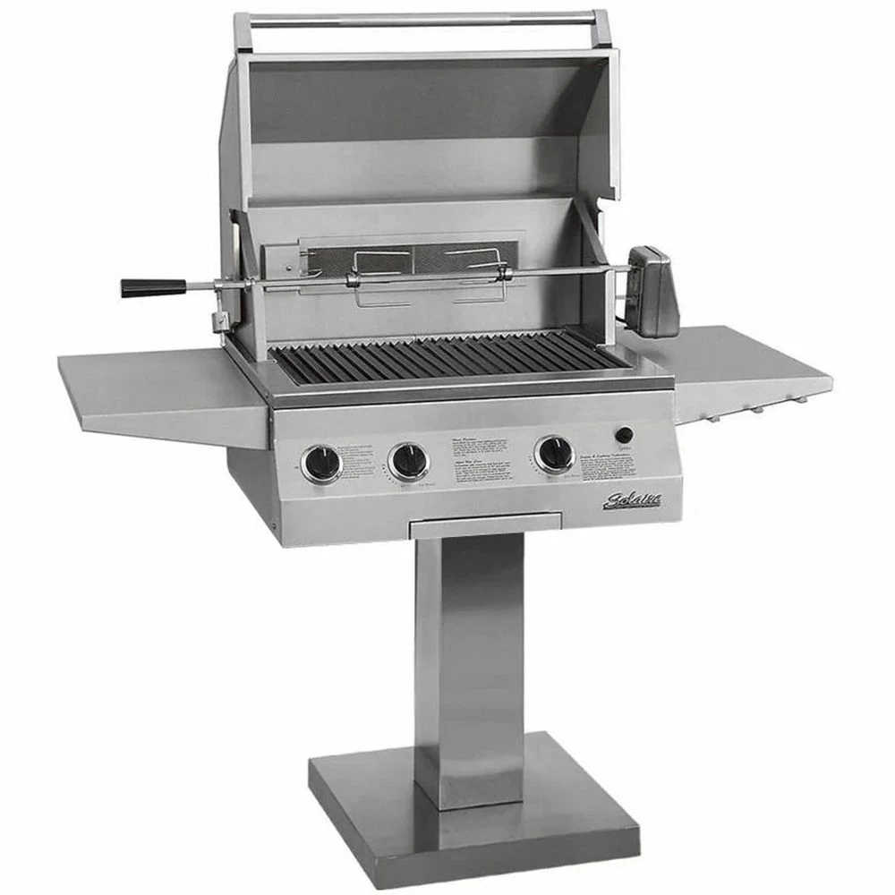 Solaire AGBQ-27 27-Inch Deluxe Grill with Rotisserie on Bolt-Down Post provides a professional quality infrared grill designed to offer an improved backyard grilling experience. Featuring two main infrared burners capable of up to 24,000 BTU, this grill offers impressive heating ability across 293 square inches of main grilling area and a total grilling area of 473 square inches. Select from all infrared, all convection, and InfraVection burner configurations to match your grilling needs. The Solaire 27-inch Deluxe model also includes a 12,000 BTU rear infrared rotisserie burner with a motor, spit rod, forks, and a counterweight to expand the cooking options available on this grill. Your grilling experience can be further enhanced with Solaire’s large assortment of grilling accessories engineered to help you grill to your full potential (sold separately). As an added bonus, this grill features a limited lifetime warranty on all stainless steel construction, main burners, and V-grilling grids as well as a two-year warranty on its ignition system and a one-year warranty on nearly all other parts.