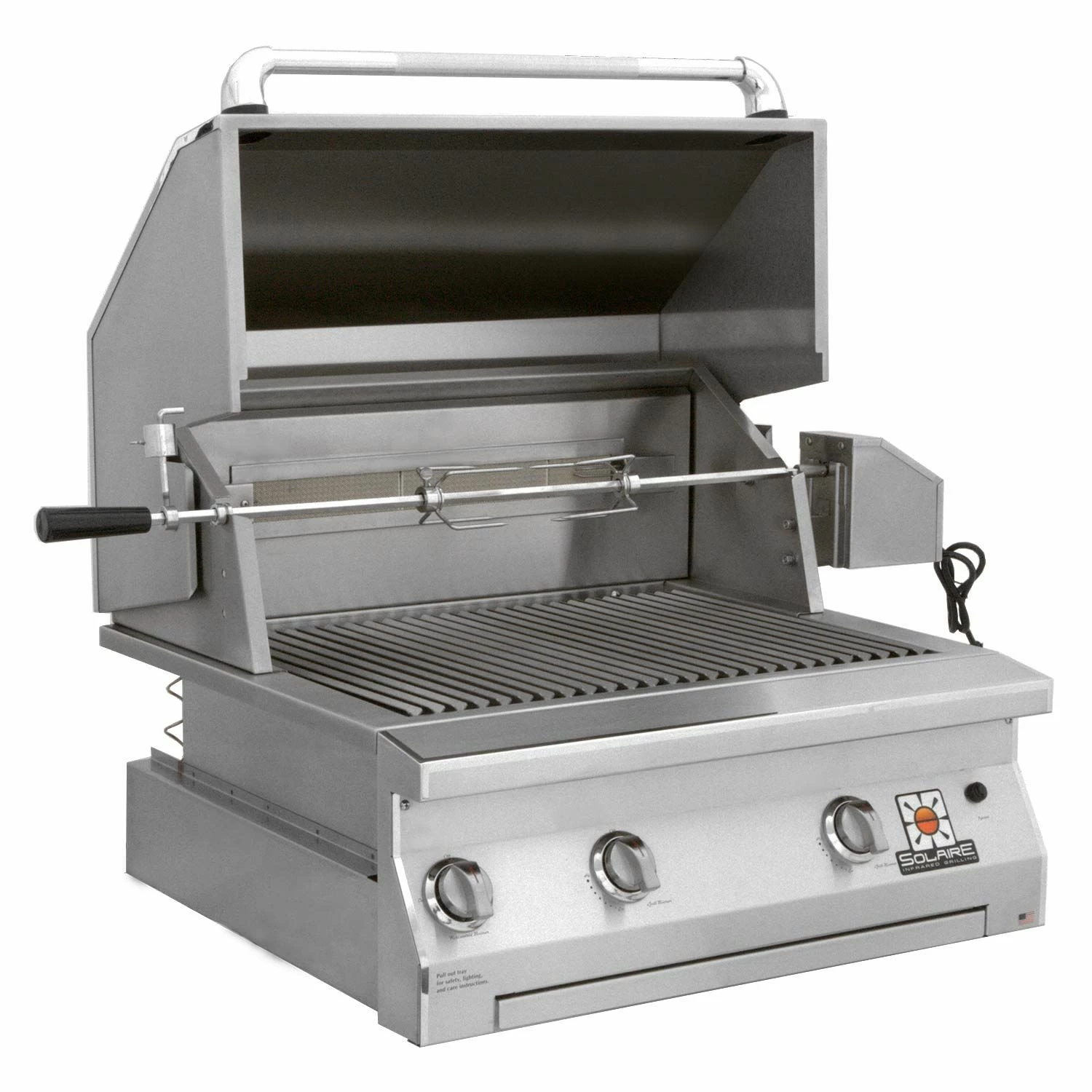 Solaire AGBQ-30 30-Inch Deluxe Built-In Grill with Rotisserie provides a professional quality infrared grill designed to offer an improved backyard grilling experience. Featuring two main infrared burners capable of up to 55,000 BTU, this grill offers impressive heating ability across 455 square inches of main grilling area and a total grilling area of 703 square inches. Select from all infrared, all convection, and InfraVection burner configurations to match your grilling needs. The Solaire 30-inch Deluxe model also includes a 14,000 BTU rear infrared rotisserie burner with a motor, spit rod, forks, and a counterweight to expand the cooking options available on this grill. The Solaire 30-inch Deluxe model also includes a 14,000 BTU rear infrared rotisserie burner with a motor, spit rod, forks, and a counterweight to expand the cooking options available on this grill. Your grilling experience can be further enhanced with Solaire’s large assortment of grilling accessories engineered to help you grill to your full potential (sold separately). As an added bonus, this grill features a limited lifetime warranty on all stainless steel construction, main burners, and V-grilling grids as well as a two-year warranty on its ignition system and a one-year warranty on nearly all other parts.