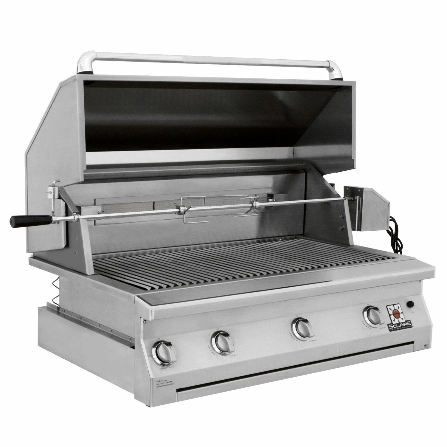 Solaire AGBQ-42 42-Inch Deluxe Built-In Grill with Rotisserie provides a professional quality infrared grill designed to offer an improved backyard grilling experience. Featuring three main infrared burners capable of up to 82,000 BTU, this grill offers impressive heating ability across 667 square inches of main grilling area and a total grilling area of 1,027 square inches. Select from all infrared, all convection, and InfraVection burner configurations to match your grilling needs. The Solaire 42-inch Deluxe model also includes a 16,000 BTU rear infrared rotisserie burner with a motor, spit rod, forks, and a counterweight to expand the cooking options available on this grill. Your grilling experience can be further enhanced with Solaire’s large assortment of grilling accessories engineered to help you grill to your full potential (sold separately). As an added bonus, this grill features a limited lifetime warranty on all stainless steel construction, main burners, and V-grilling grids as well as a two-year warranty on its ignition system and a one-year warranty on nearly all other parts.