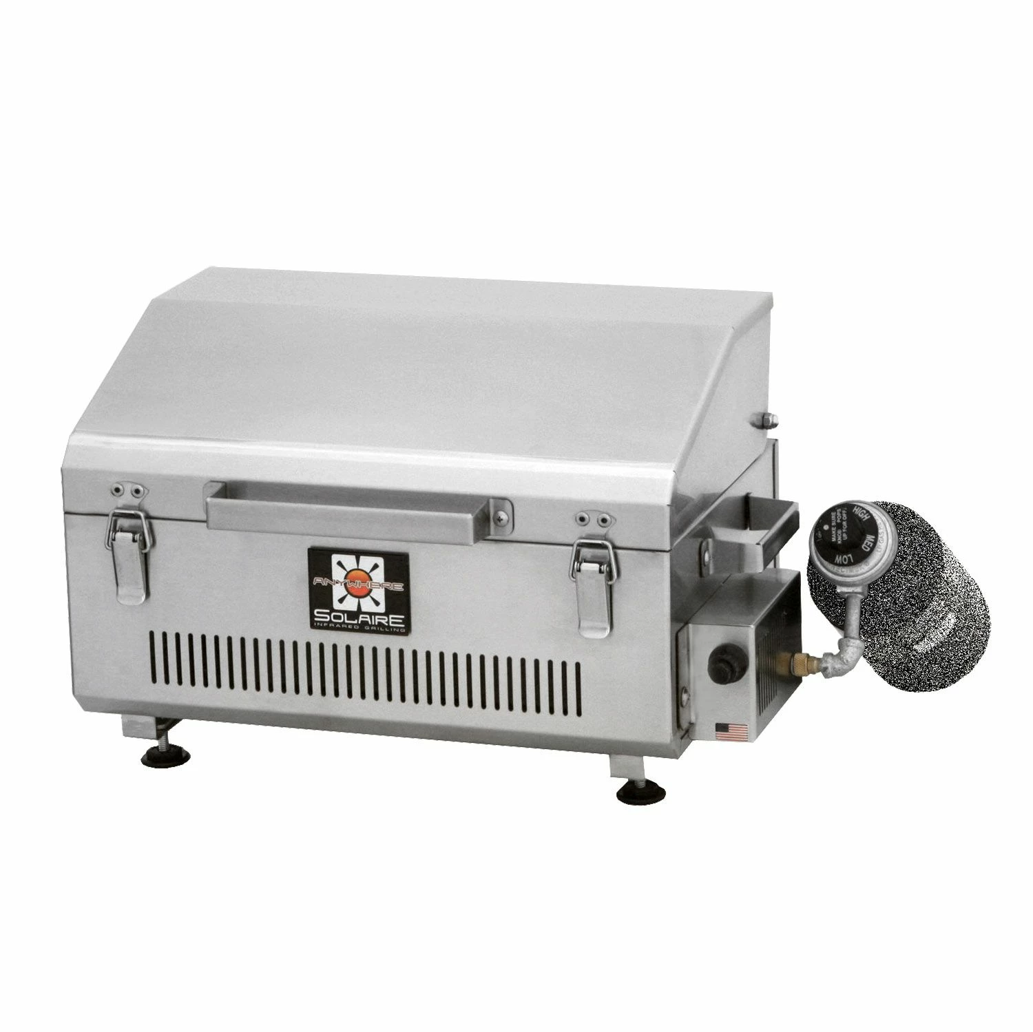 Solaire IR17 Anywhere Infrared Marine-Grade Portable Grill provides a professional quality infrared grill designed to offer an improved backyard grilling experience. This premium portable grill offers a full grilling experience in a small package. Featuring marine-grade 316 stainless steel construction, this grill offers an added level of corrosion resistance when compared to traditional stainless steel grills, making it an excellent option for those who frequently grill in salty coastal air. Featuring 14,000 BTU of power, this unit offers impressive heat across the 14-inch by 10-inch grilling surface–great for those with limited space but who still want a high performance grill. This ultraportable grill weighs only 20 pounds and includes a carrying bag for easy transport to picnics, tailgate parties, or anywhere else you need to go.