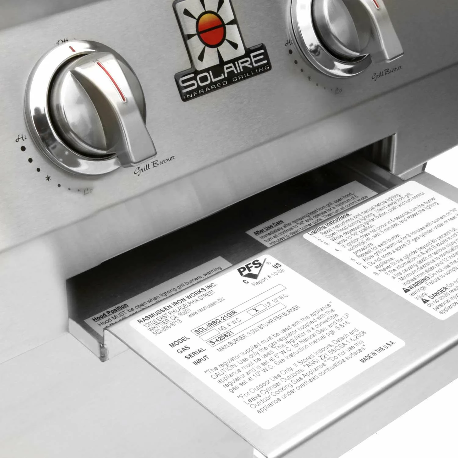 Solaire IRBQ-21 21-Inch Standard Built-In Grill provides a professional quality infrared grill designed to offer an improved backyard grilling experience. Featuring two main infrared burners capable of up to 18,000 BTU, this grill offers impressive heating ability across 222 square inches of main grilling area and a total grilling area of 359 square inches. Select from all infrared, all convection, and InfraVection burner configurations to match your grilling needs. Your grilling experience can be further enhanced with Solaire’s large assortment of grilling accessories engineered to help you grill to your full potential (sold separately). As an added bonus, this grill features a limited lifetime warranty on all stainless steel construction, main burners, and V-grilling grids as well as a two-year warranty on its ignition system and a one-year warranty on nearly all other parts.