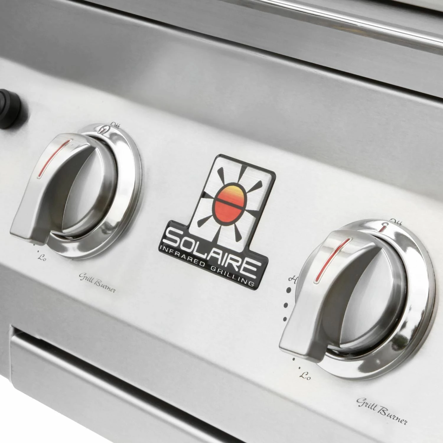 All Solaire grills offer an impressive collection of standard features to stand out from the competition. These grills offer infrared burners with ceramic plates and stainless steel construction for commercial quality cooking potential, while stainless steel V-grilling grates enhance flavor and reduce flare-ups. These impressive appliances offer 304 stainless steel construction with welded seams and no mechanical fasteners to ensure long-term durability, while hand-polished, mirror-finished accents and metal knobs offer an impressive appearance in any setting. A double skin hood with a stay-cool, stainless steel knurled handle offers added safety, while a removable stainless steel warming rack and drip tray offer added versatility and convenience. With their top-supported, self-trimming design, these grills offer easy built-in installation. This grill head can also be removed from its pedestal base and built into a grill island if your needs change.
