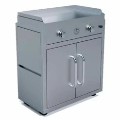 - Freestanding Grill – Metal pedestal provides stability and functionality and a convenient space to hide a propane tank