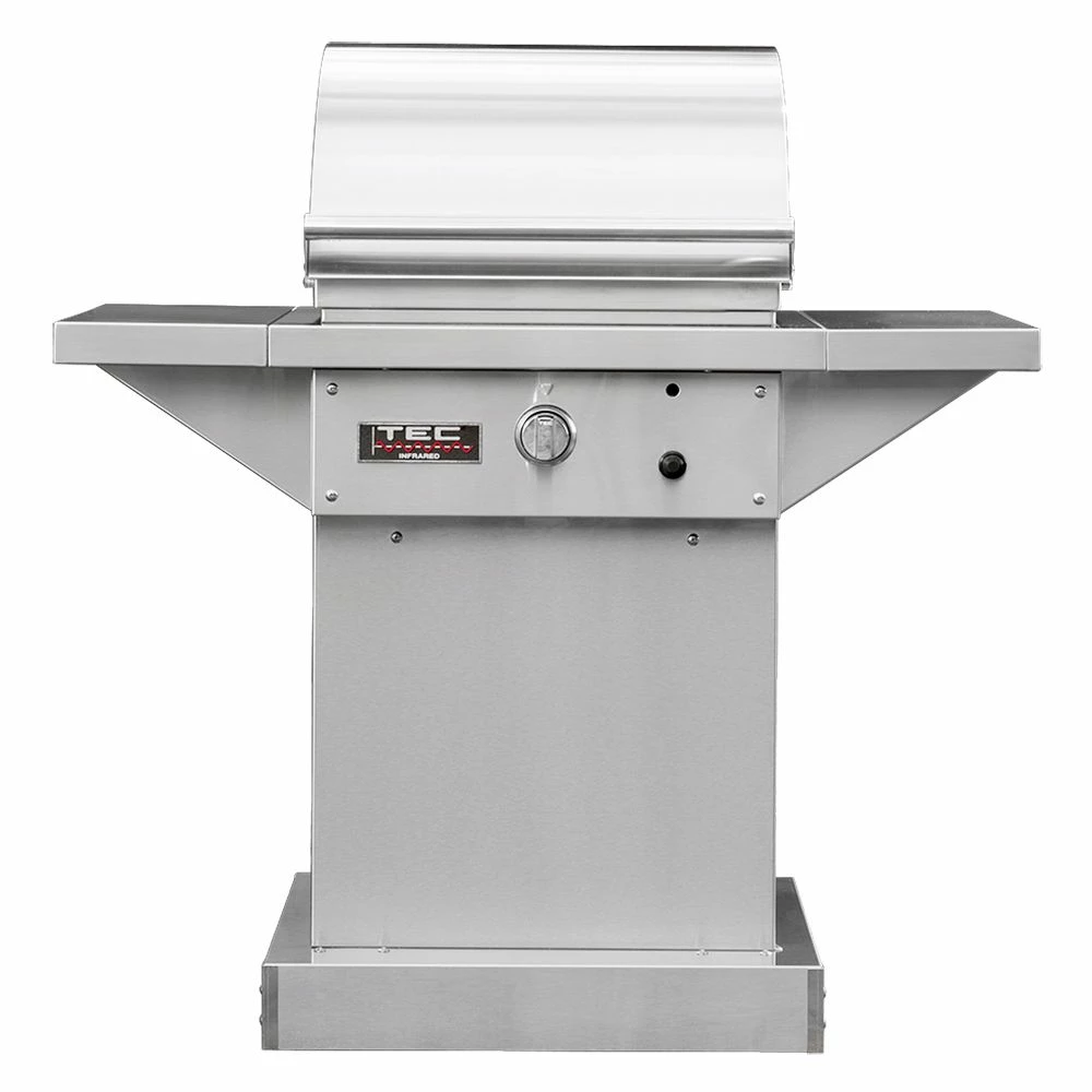 TEC Sterling Patio 1 FR Infrared Gas Grill On Pedestal, 26-Inches provides the grill enthusiast with a high performance infrared grill on a freestanding pedestal. The grill head and side shelves feature a complete 304 stainless steel construction while the supporting pedestal features the same stainless steel construction. The Sterling Patio 1 FR puts out more than 30,000 BTU over a 296 square inch cooking surface, all while using less than half the fuel of other infrared gas grills on the market. TEC’s infrared grill technology creates even heat distribution and eliminates moisture loss, allowing you to create meals packed with charbroiled flavor – the Patio 1 FR allows you to achieve high quality results on a consistent basis.