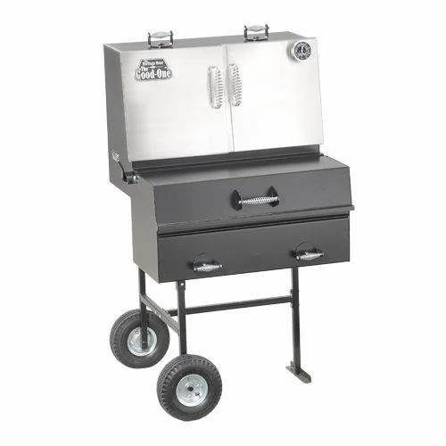 The Good-One The Heritage Oven Generation III Natural Wood Smoker and Grill, Freestanding provides a large sized natural wood smoker that creates real “pit BBQ” flavor. The Heritage Ovenâ„¢ stays true to the quality and tradition expected from competition level smokers, while its innovative design ensures even cooking by moving the heat and smoke throughout the 1,199 Sq. Inches of cooking area. The newly designed extended charcoal basket allows for longer burn times, and is also available with a reverse lid design. Elevate your BBQ by returning to tradition – with the natural smokey flavor that only charcoal and wood can deliver!