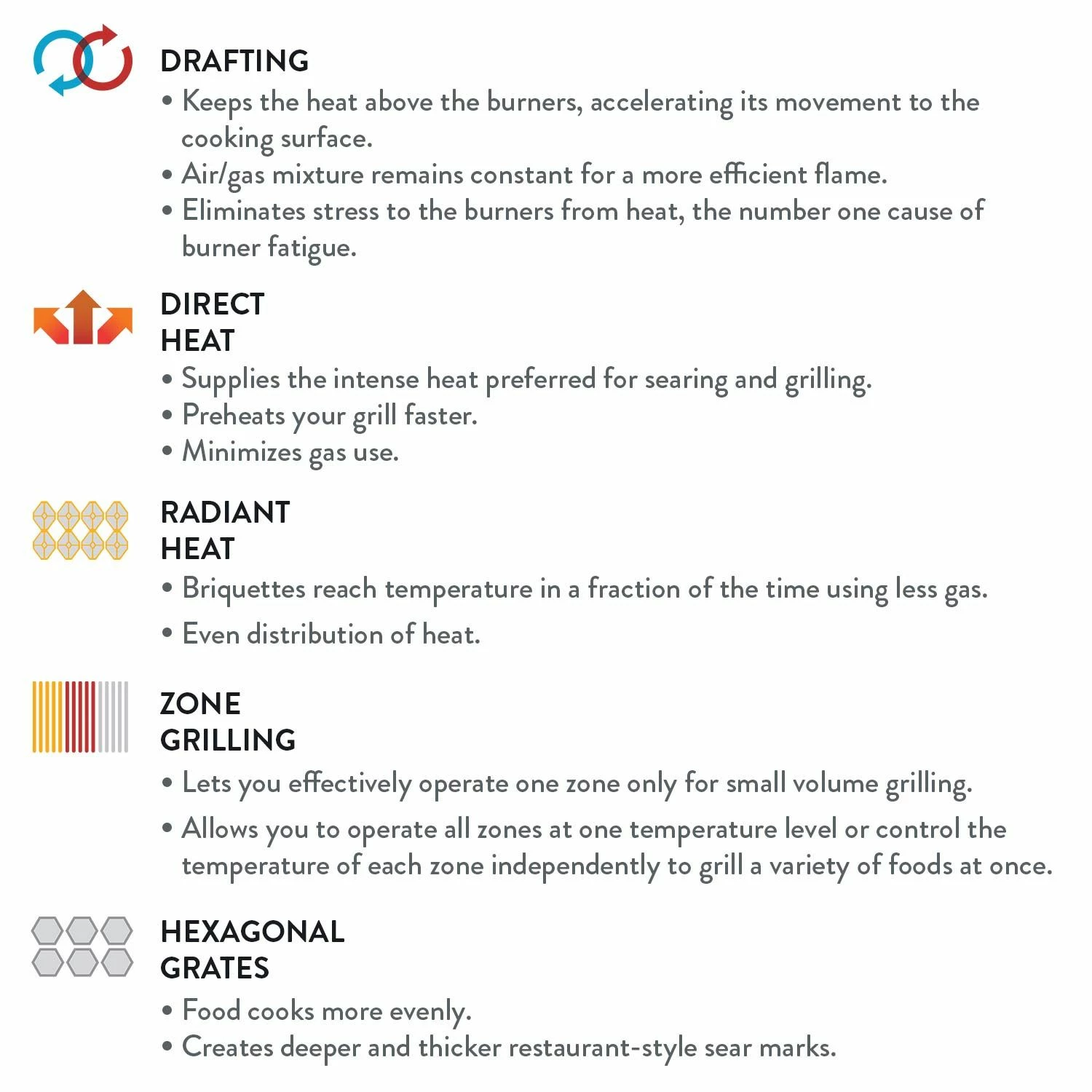 - TempTrack LED – Indicates average temperature from all burners for an overall picture of grill temperature–know when your grill is ready with a quick glance at the grill hood