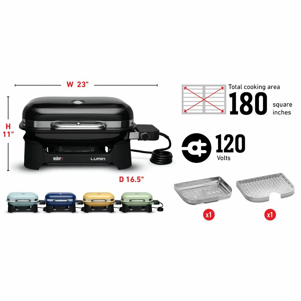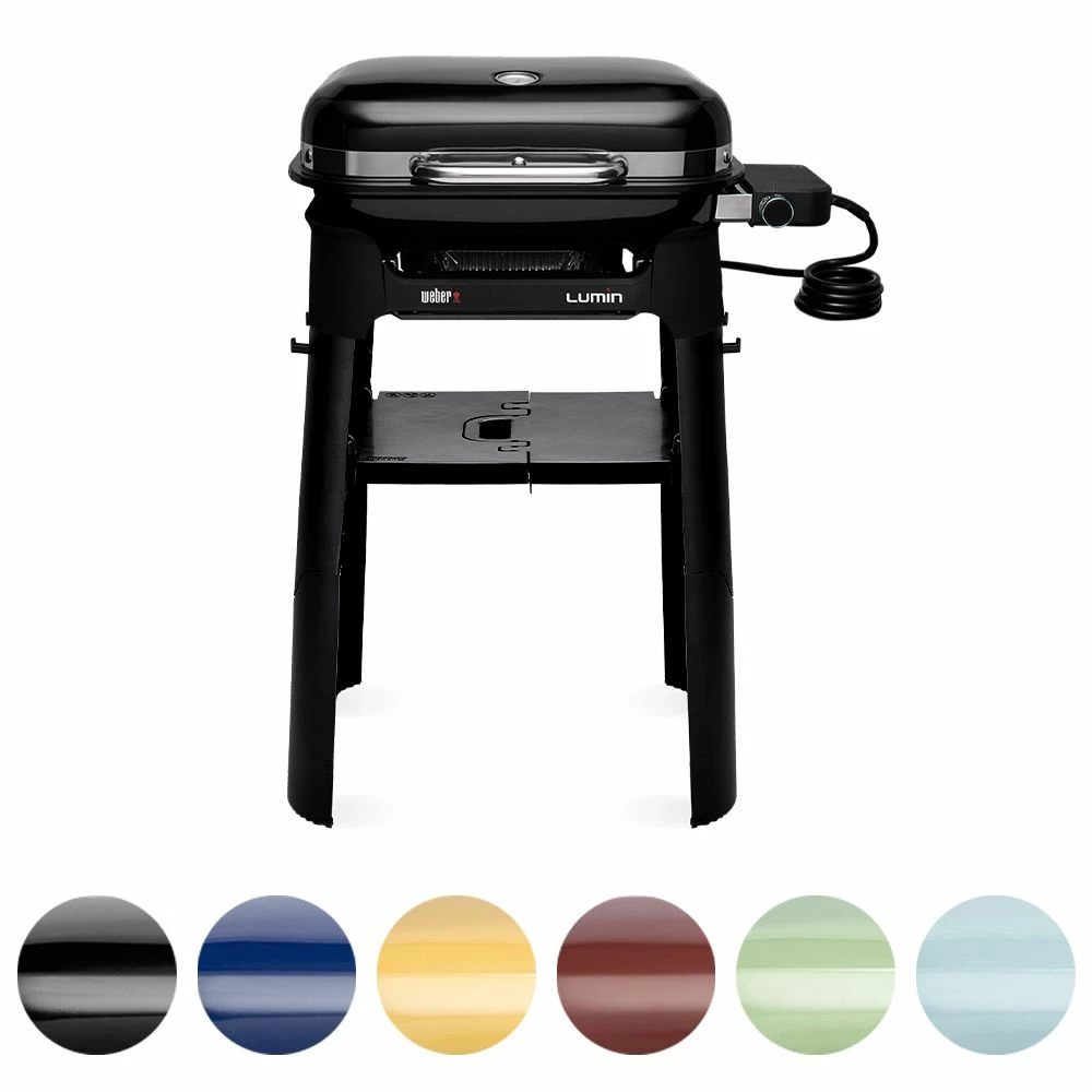 Weber Lumin Electric Grill on Cart offers exceptional utility in a polished package. The Weber Lumin electric grill is the next evolution in urban outdoor cooking, reaching temperatures up to 600?F for serious sear marks. It features a number of modes, including searing, smoking, steam or boiling to provide next-level flexibility. The food-warming function keeps food at serving temp for longer and allows you to grill from frozen by thawing food while the grill preheats.