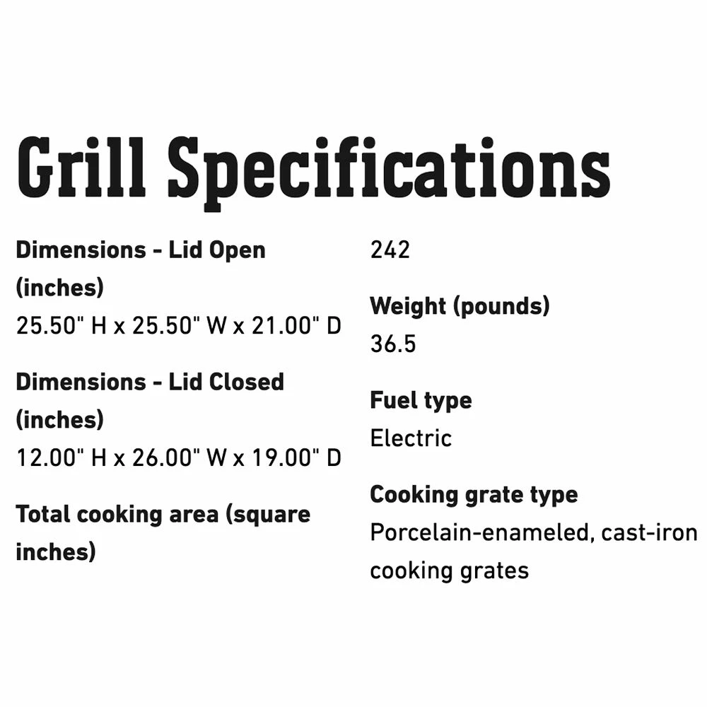 | Total Grill Area | 242 sq. in. |