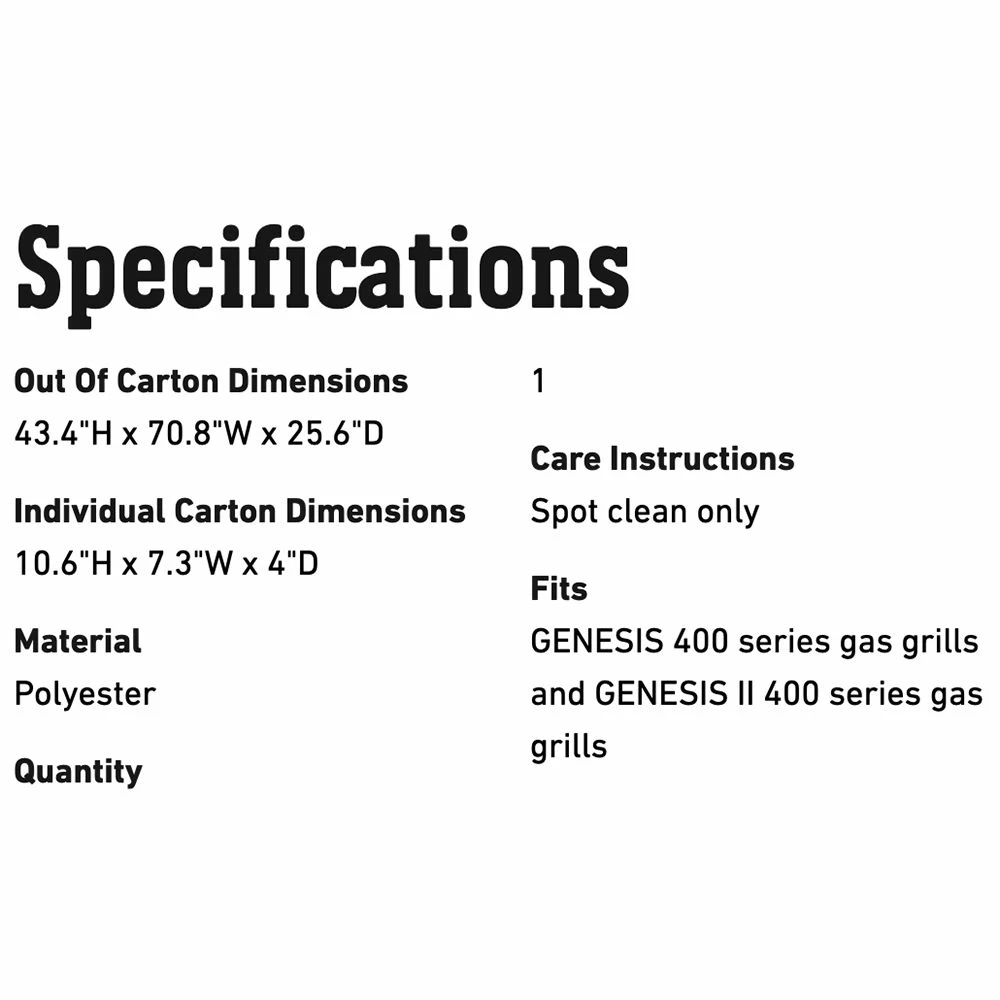 Weber Premium Grill Cover for Genesis 400 Series Grills (WEB-7758) offers an excellent way to protect your Weber grill from the elements. Weather-resistant fabric helps shield your grill from rain and snow, while the smart fastening straps ensure the grill cover stays in place for lasting protection.